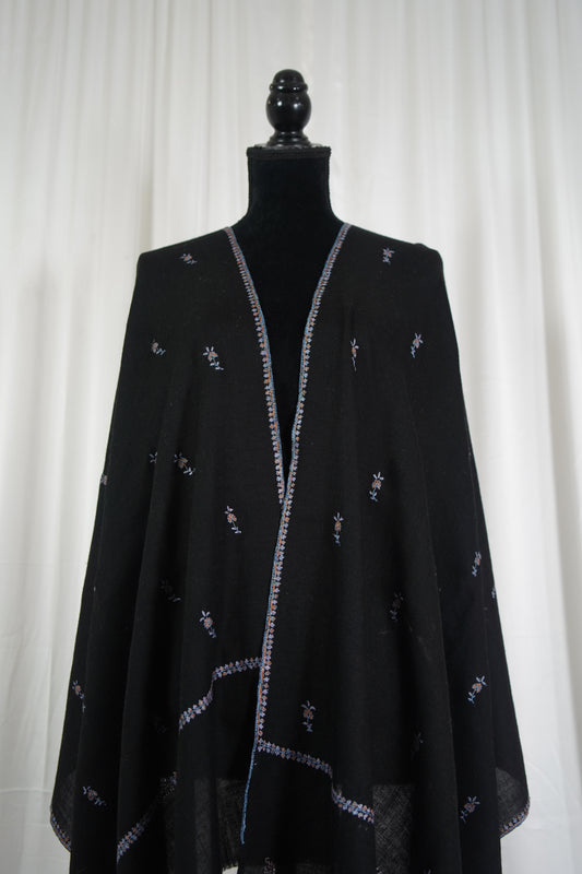 denim blue GI hand spun butis embroidery pashmina shawl 9578