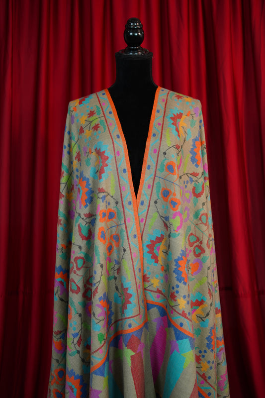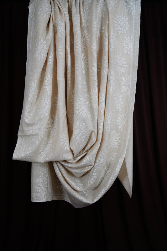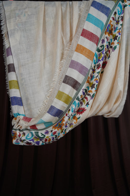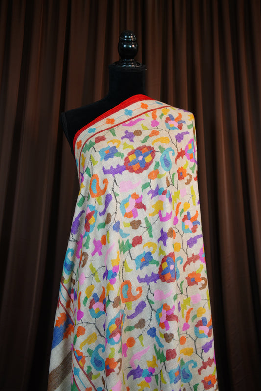 Creamy white multicoloured GI kani jamma pashmina shawl