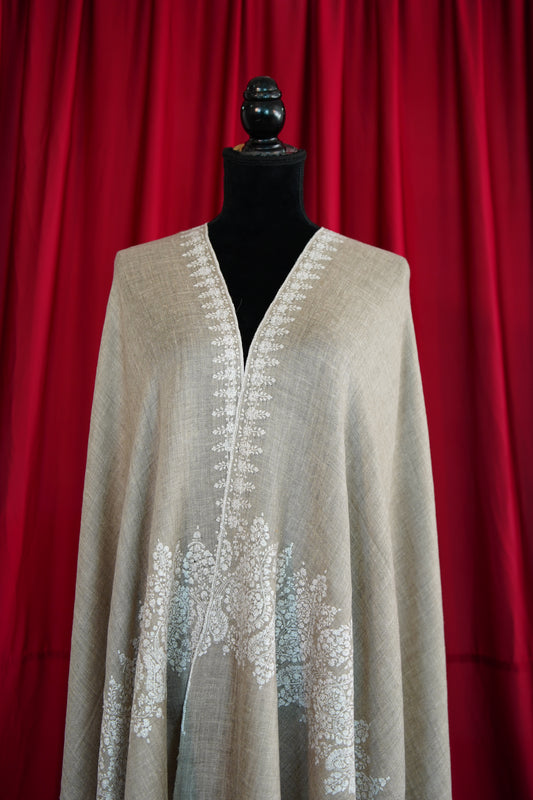 white and natural striped GI handspun embroidery pashmina stole 9817