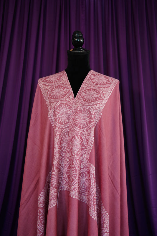 lemonade pink GI jaali embroidery pashmina stole 9922
