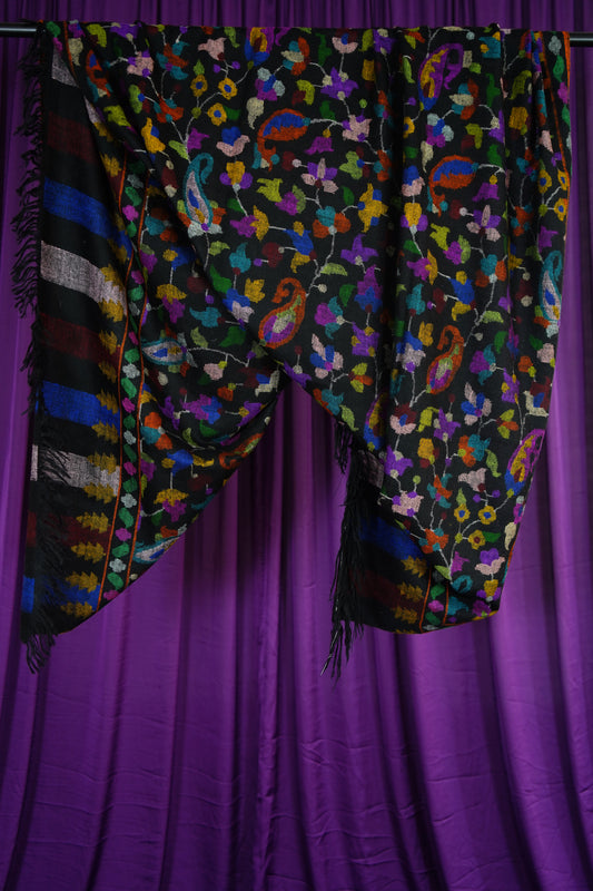 jet black handspun GI butis embroidery pashmina stole 9763