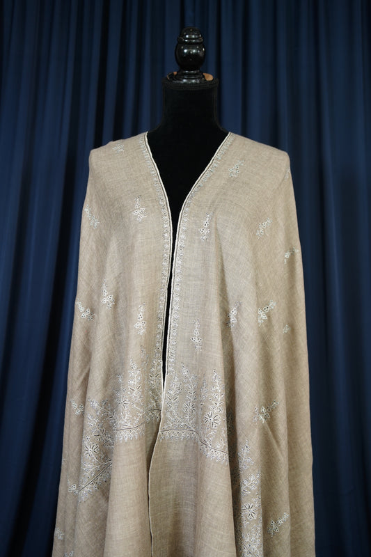 light natural GI embroidery pashmina stole 9768