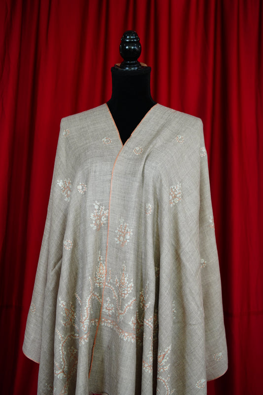 light natural GI embroidery pashmina stole 9714