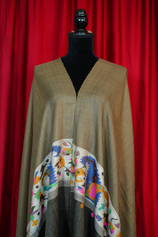 light natural GI embroidery pashmina shawl 9755