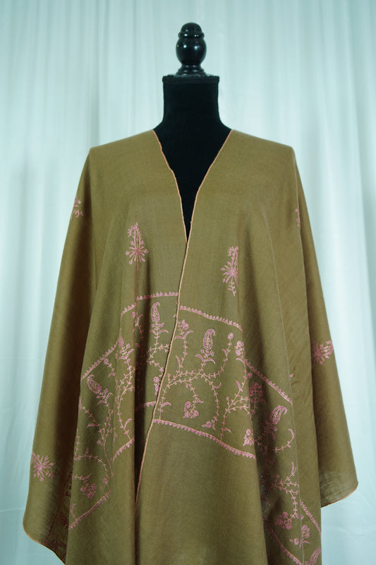 Green GI hand spun butis embroidery pashmina shawl 9575