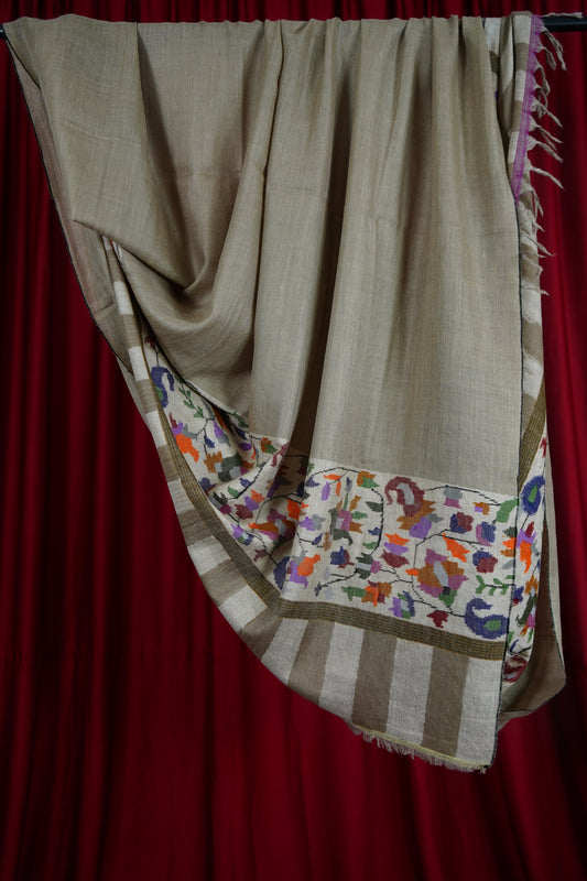 dark ash brown GI hand spun embroidery pashmina shawl 9574