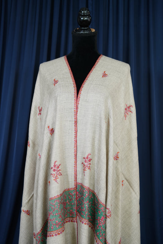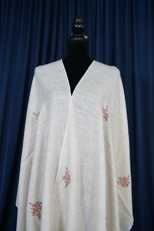 light natural GI embroidery pashmina stole 9768
