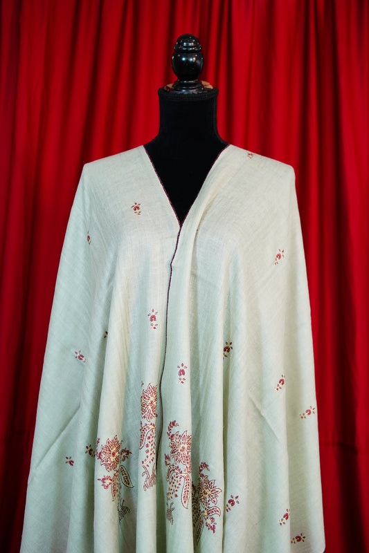 ecru biscuit GI embroidery pashmina shawl 9790