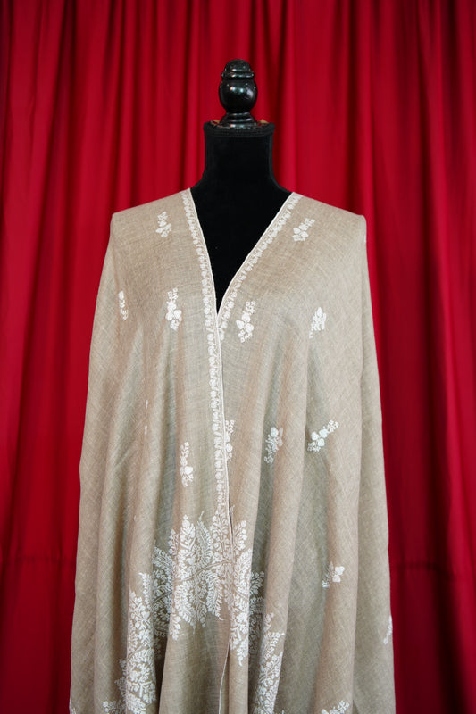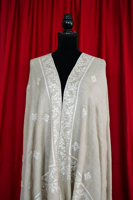 white and natural striped GI handspun embroidery pashmina stole 9817