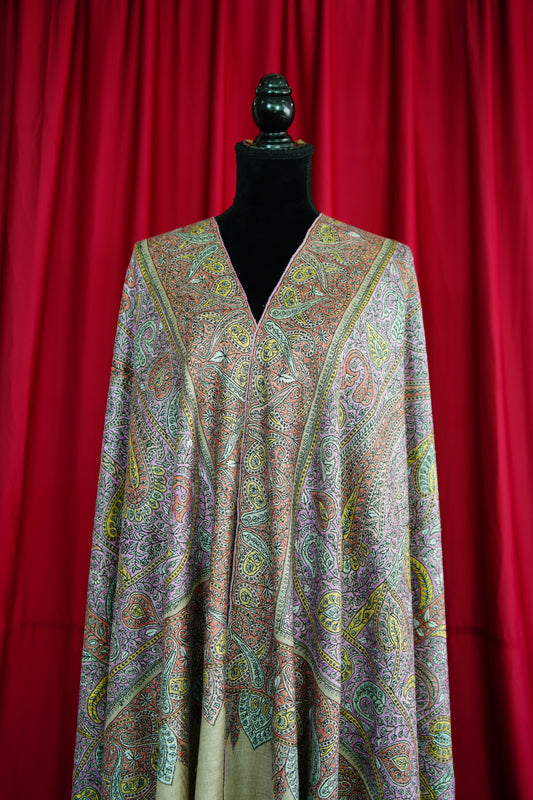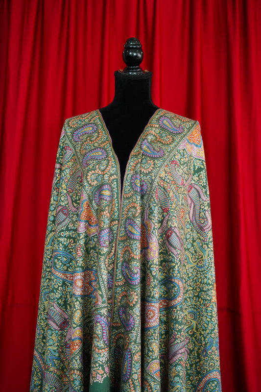 sea green multi-coloured GI embroidery pashmina shawl 9890