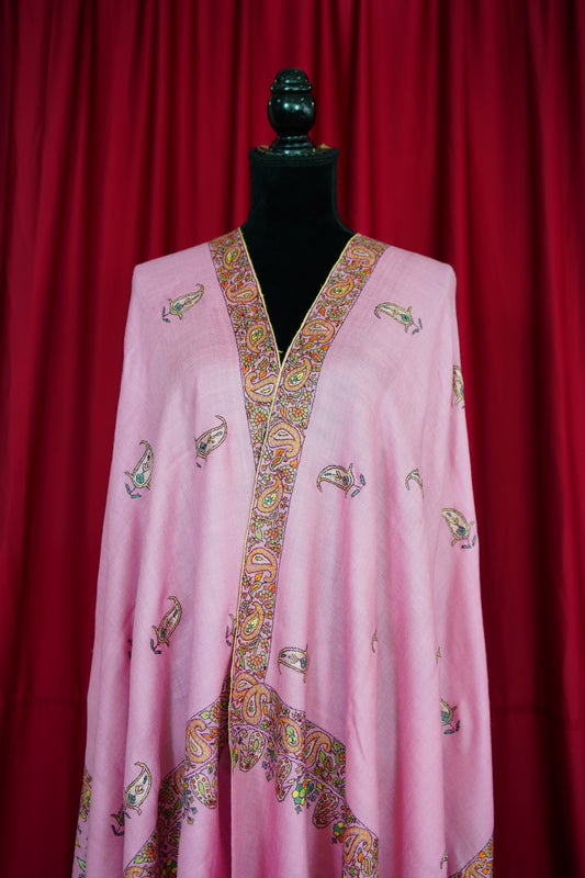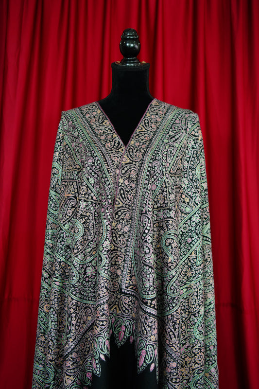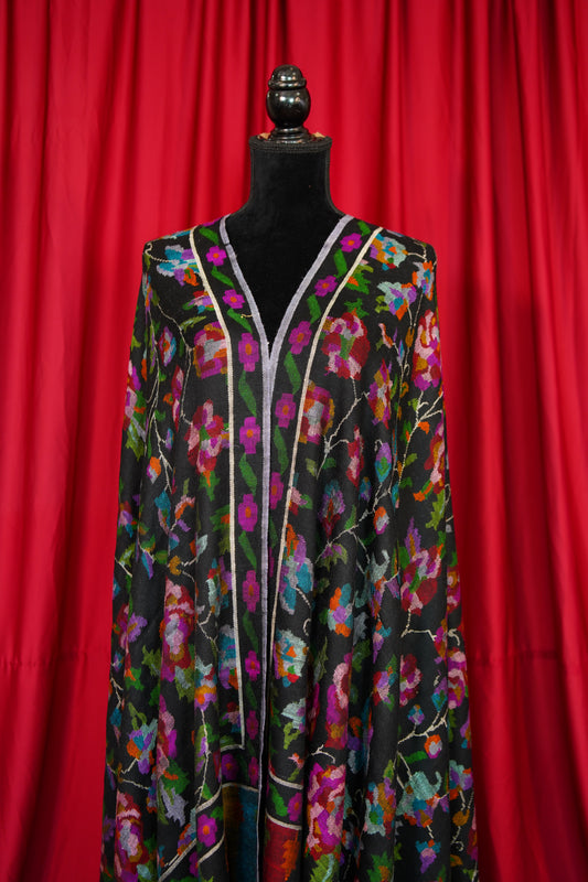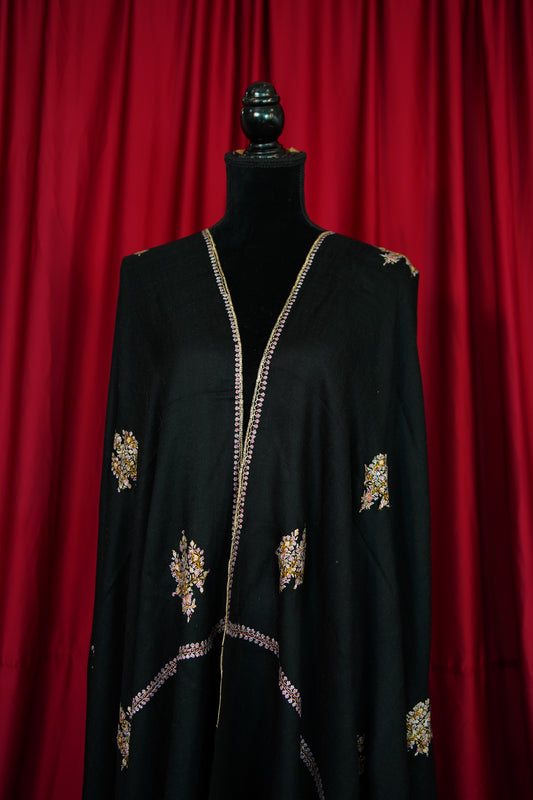jet black multi-coloured GI jamma embroidery pashmina shawl 9892