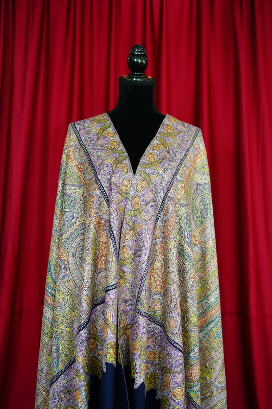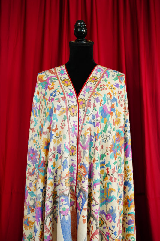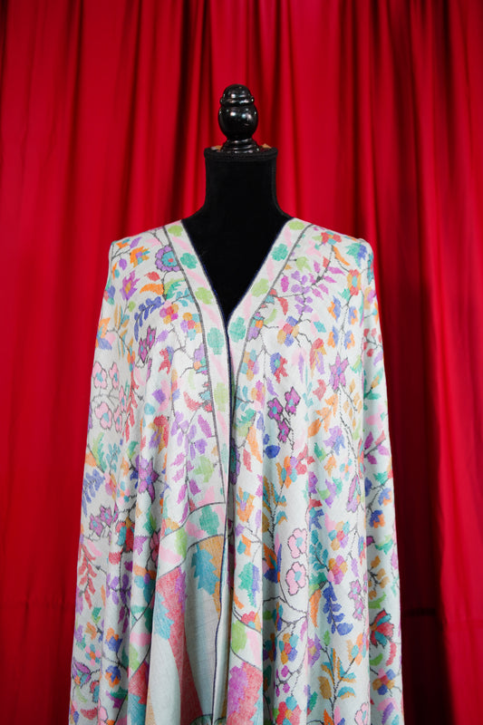 blue GI multi-coloured jamma embroidery pashmina shawl 9887
