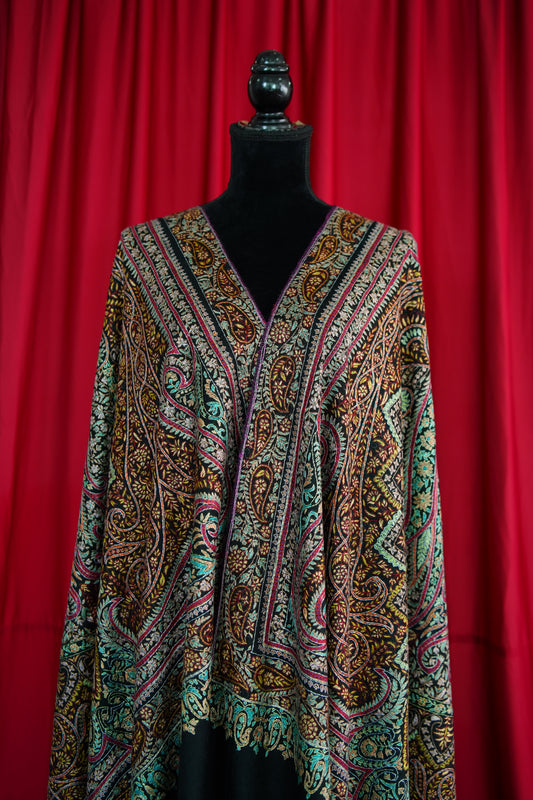 black multi-coloured GI kani jamma pashmina shawl 9864