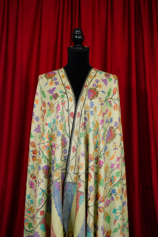 banana light yellow multi-coloured GI kani jamma pashmina shawl 9899