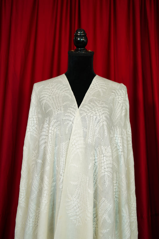pure white GI butis embroidery pashmina stole 9837