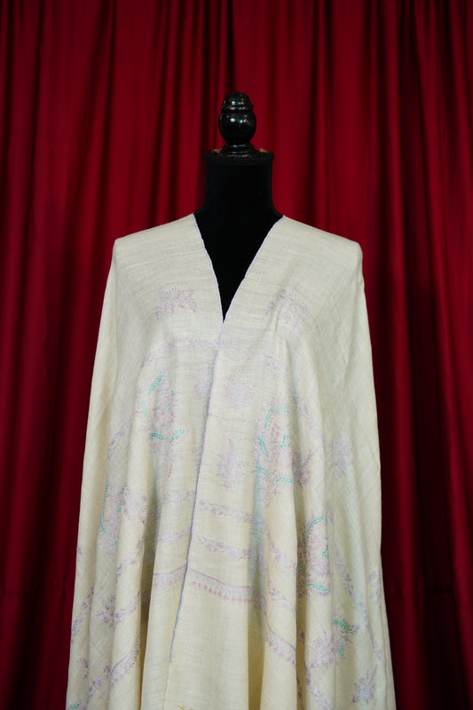 creamy white GI butis embroidery pashmina shawl 9907