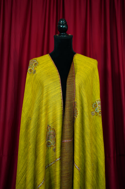 corn yellow and brown GI reversible embroidery pashmina shawl 9905
