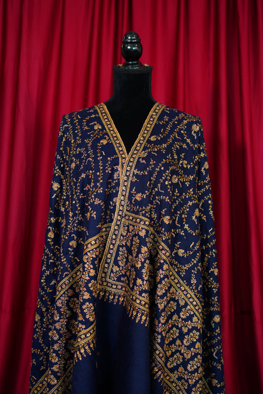 denim blue GI jaali embroidery pashmina shawl 9906