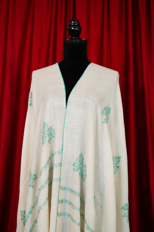 pure white GI butis embroidery pashmina shawl 9900