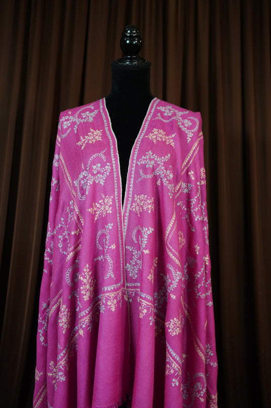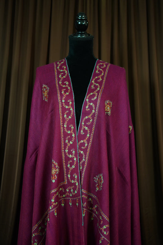 dark cerise byzantine pink GI butis embroidery pashmina shawl 9622