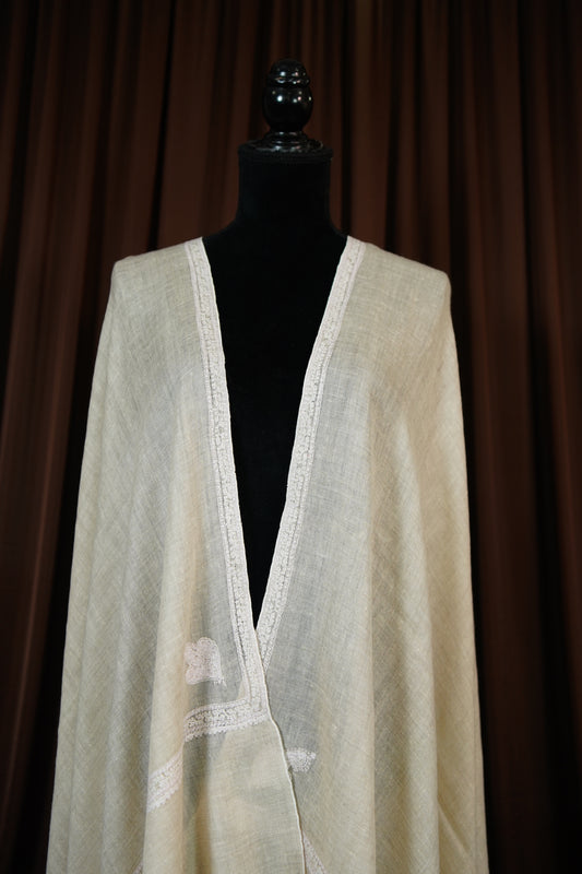 Off-white XL silk Embroidery Gi Pashmina Shawl 9611