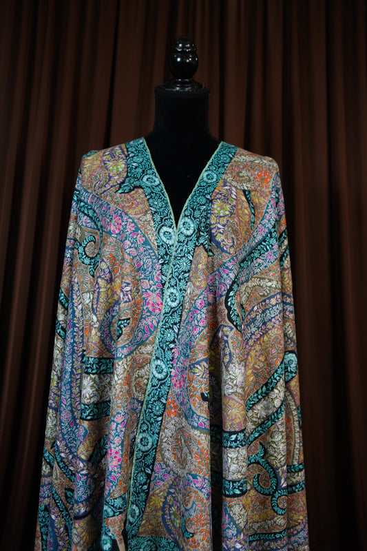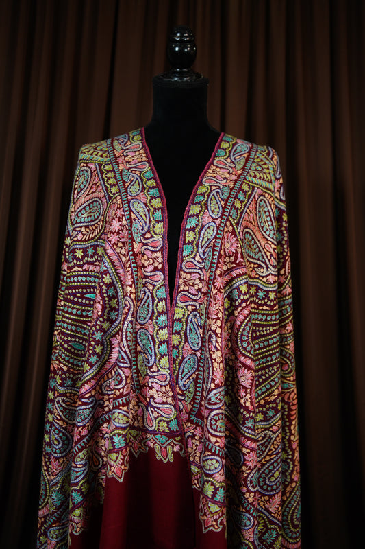multi-coloured GI jamma embroidery pashmina shawl 9627