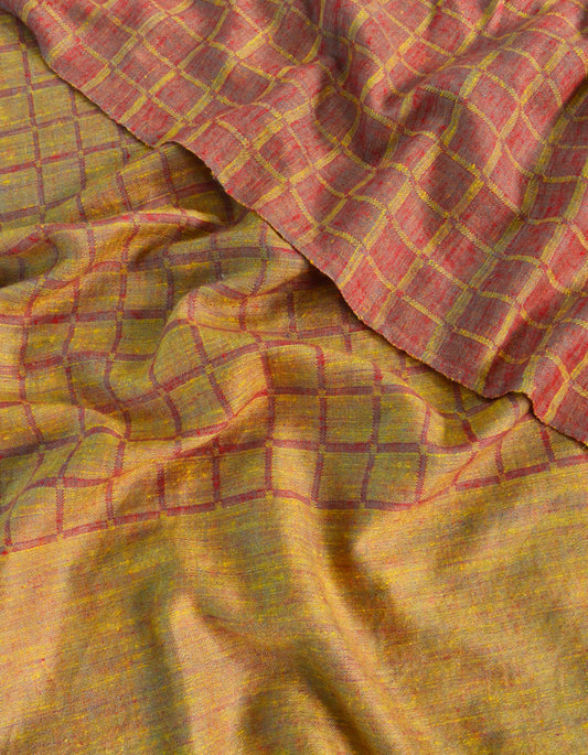 Maroon & Golden Check Reversible Pashmina Shawl 5540