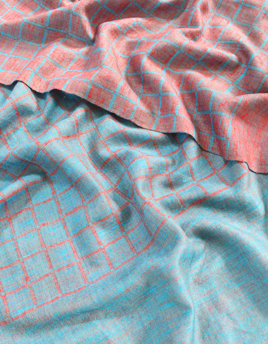 Red & Sea Green Check Reversible Pashmina Shawl 5542