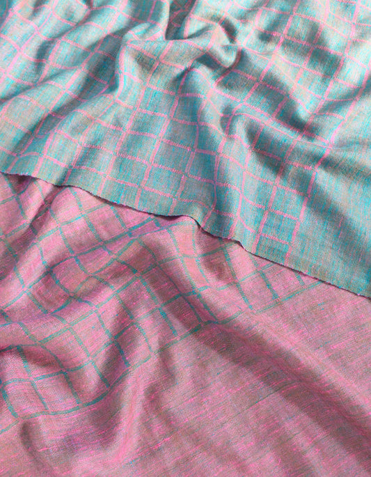 Pink & Light Blue Check Reversible Pashmina Shawl 5543