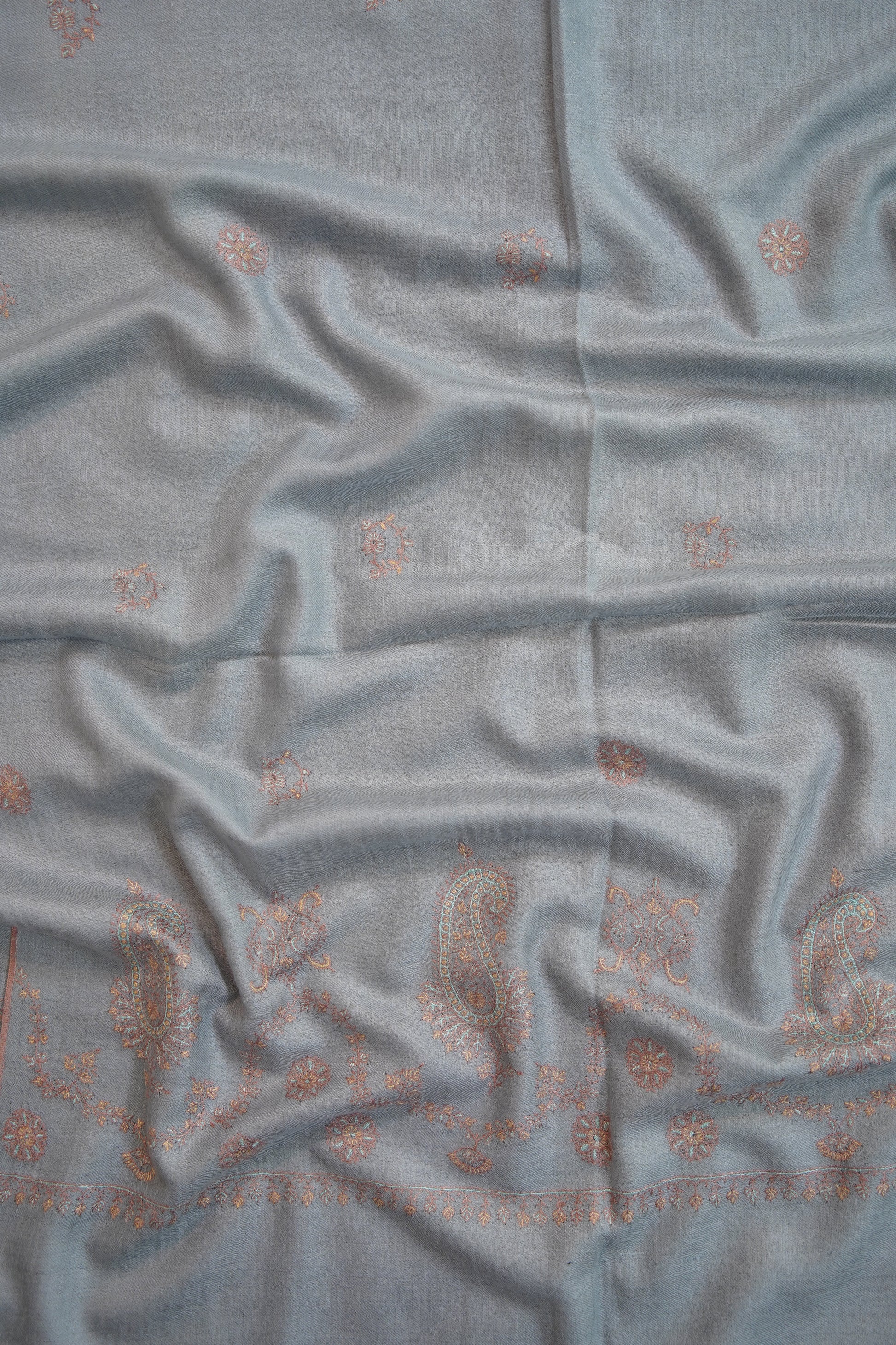 ice blue butis GI embroidery pashmina stole 9681