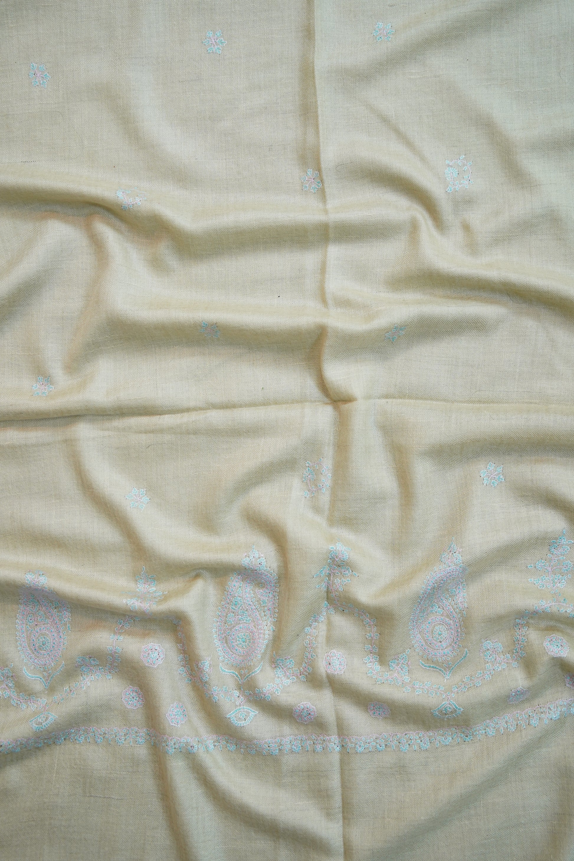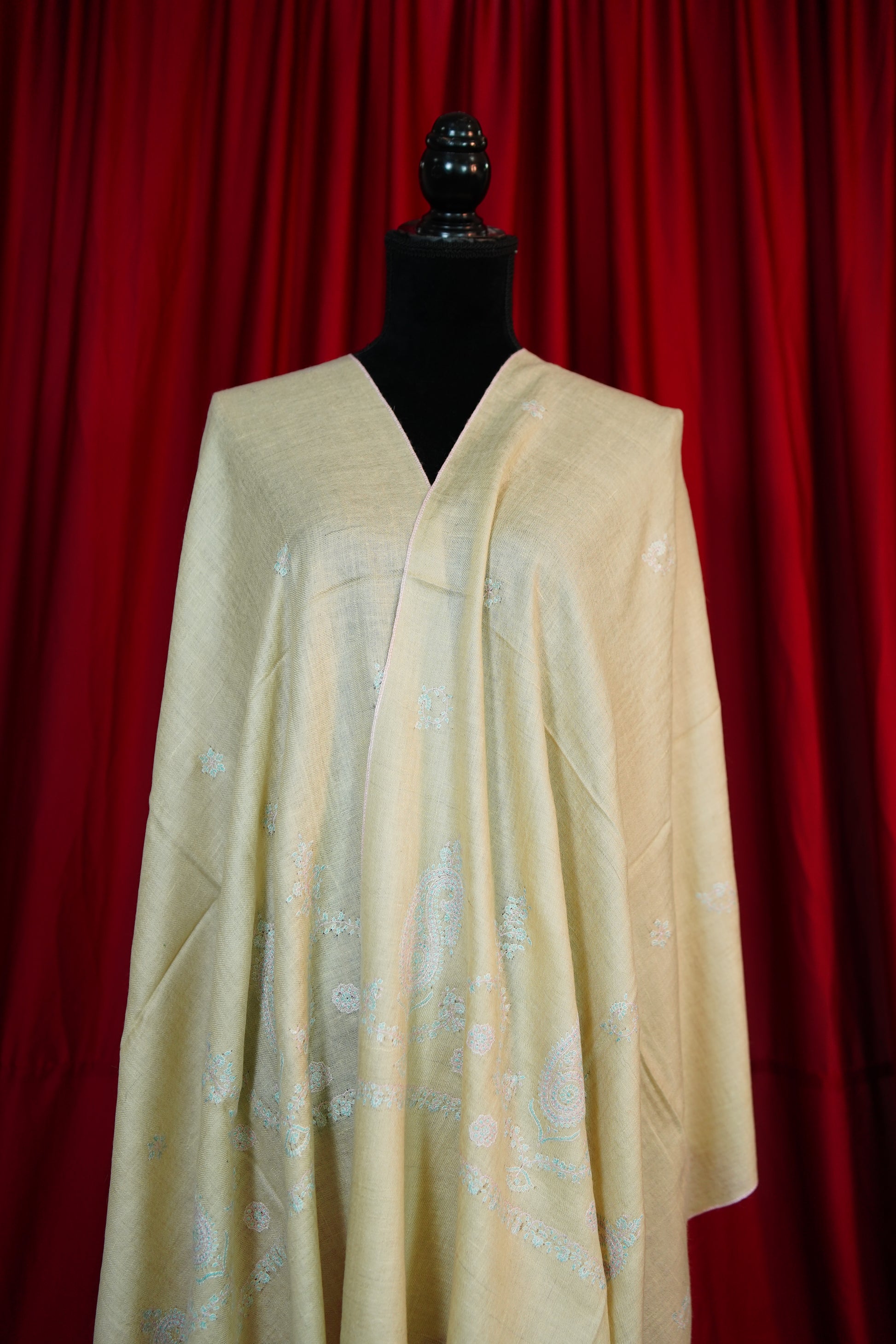 Elegantly hand-embroidered by skilled artisans, each stole features timeless Kashmiri motifs stitched with precision. The embroidery process can take weeks or even months, making every piece a testament to patience and heritage.