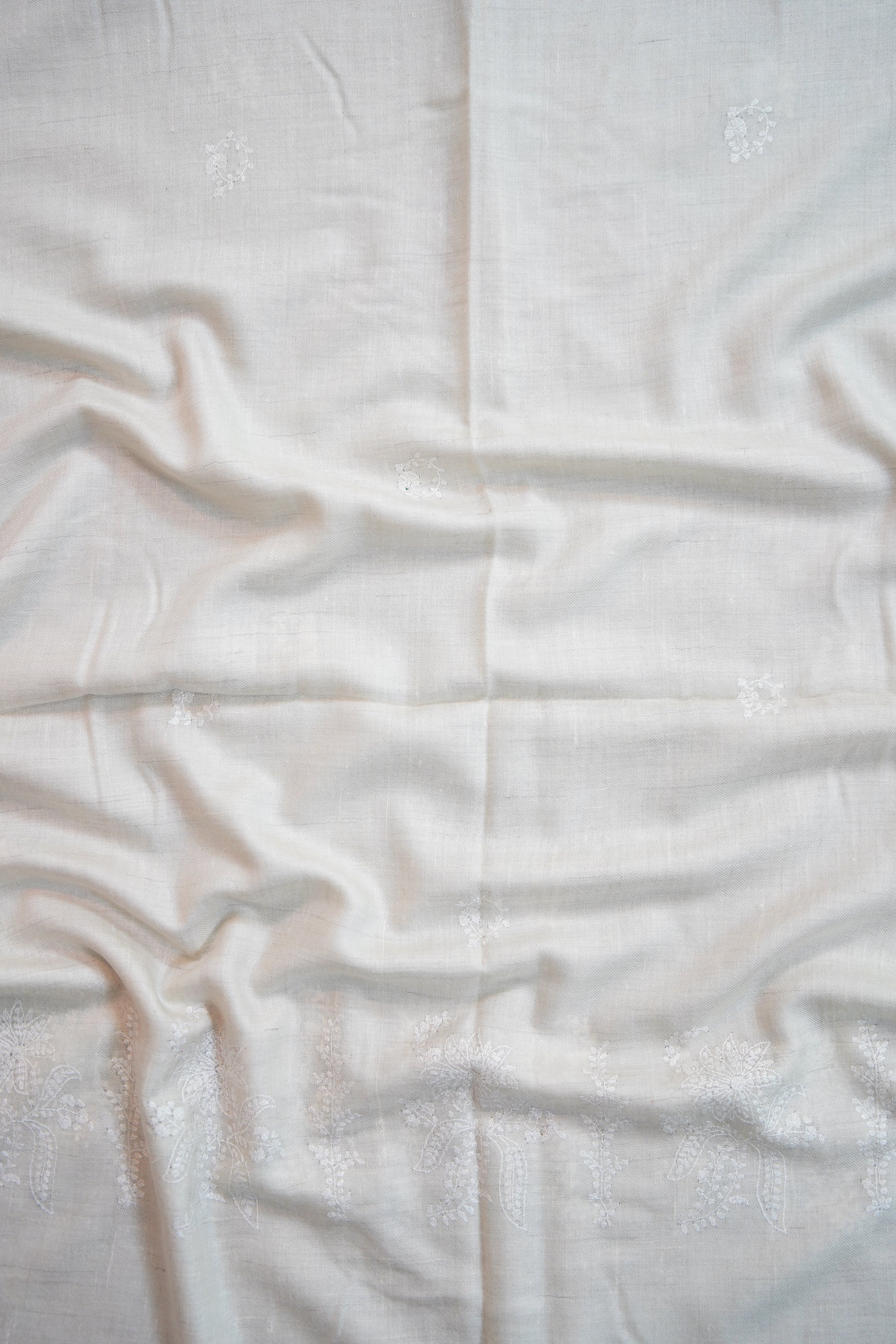 white on white GI embroidery pashmina stole 9687