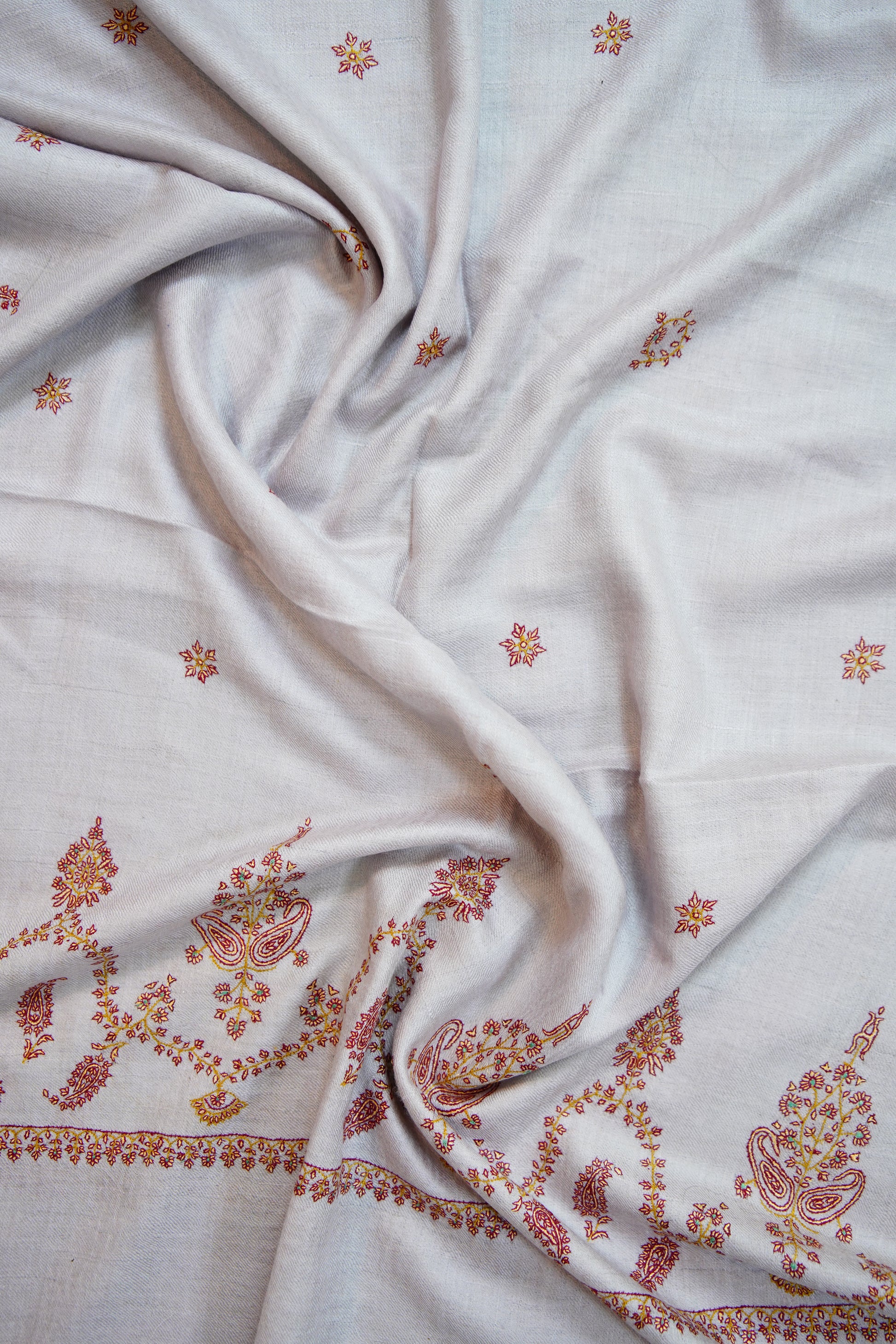 Elegantly hand-embroidered by skilled artisans, each stole features timeless Kashmiri motifs stitched with precision. The embroidery process can take weeks or even months, making every piece a testament to patience and heritage.