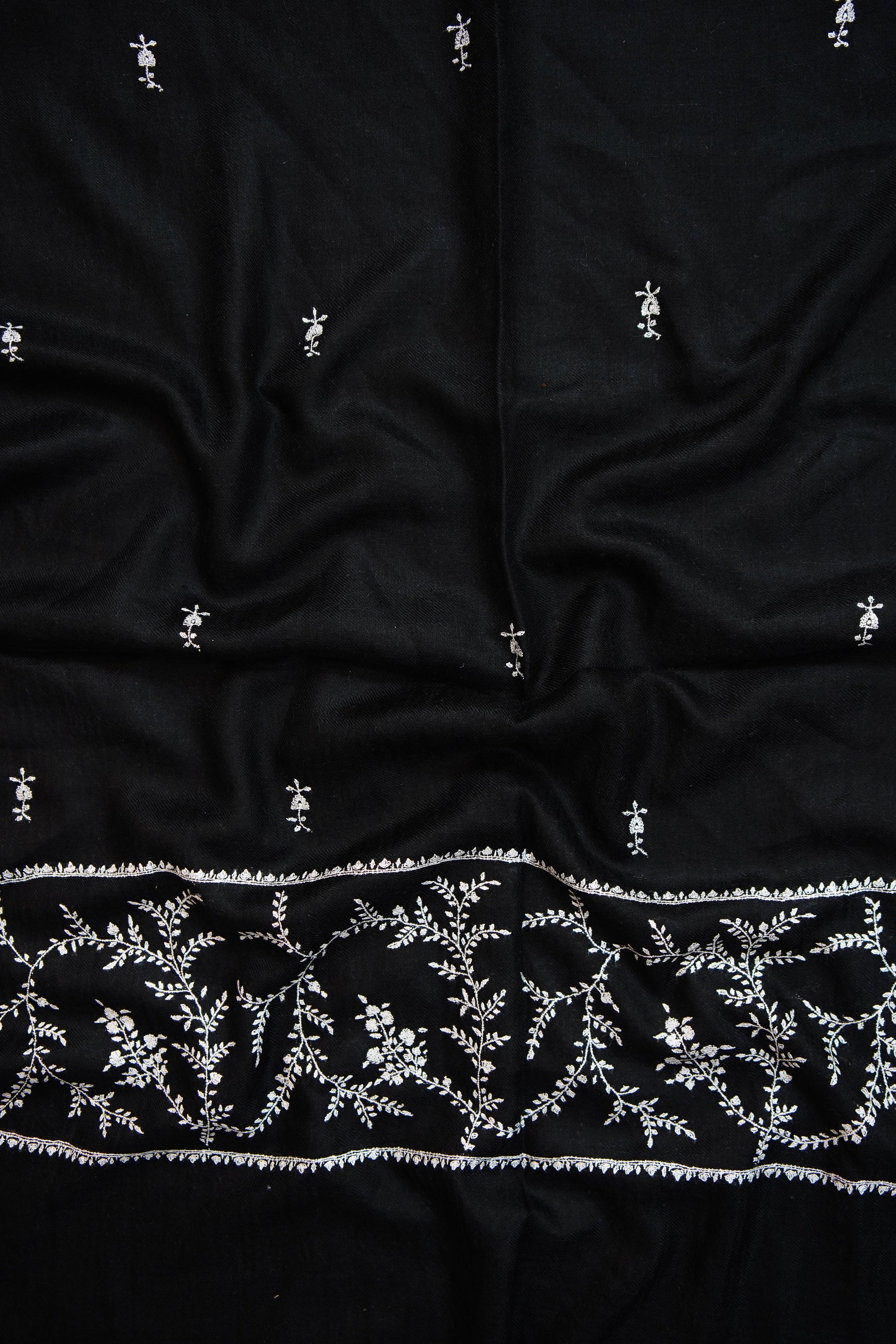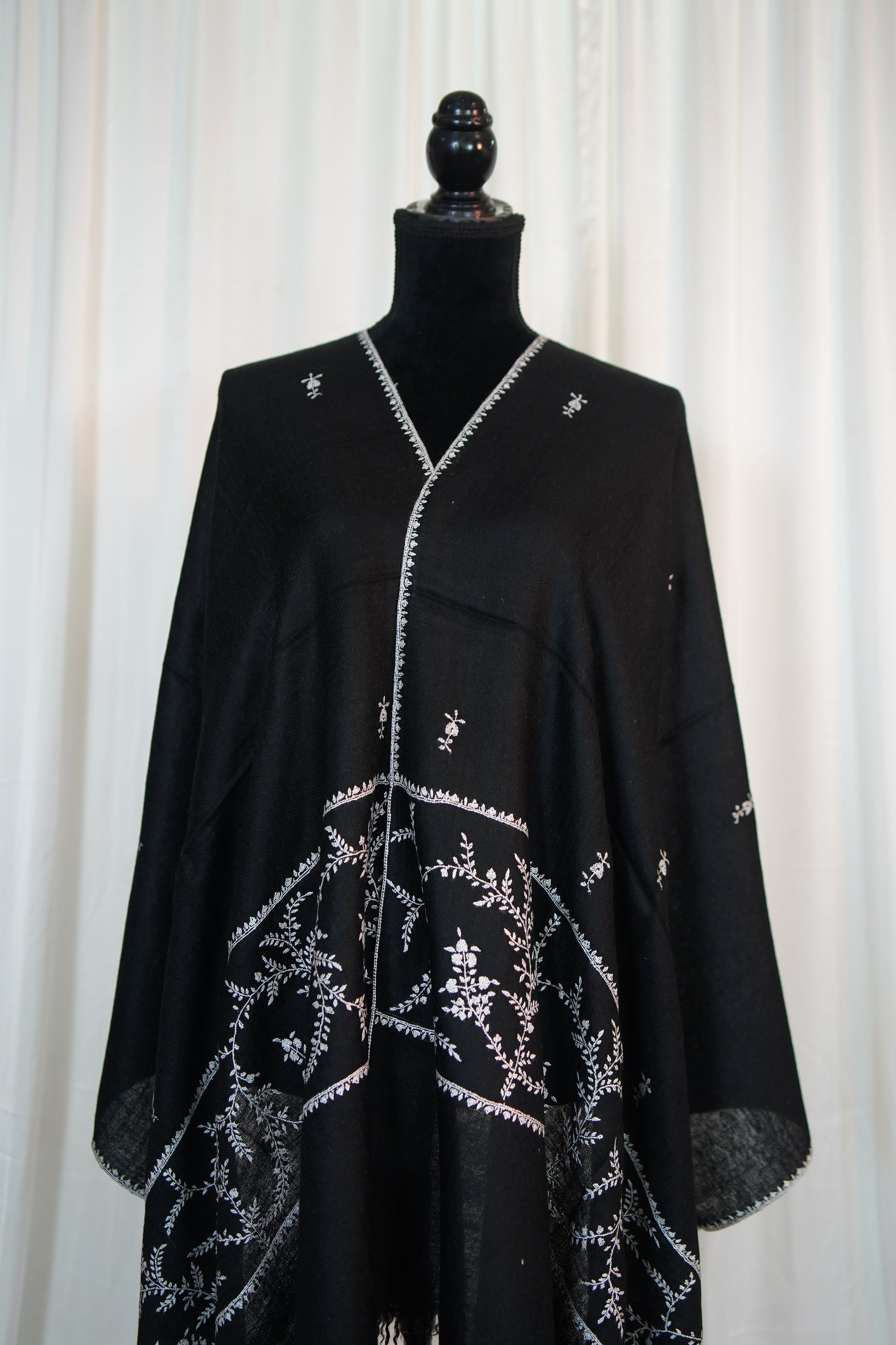 Elegantly hand-embroidered by skilled artisans, each stole features timeless Kashmiri motifs stitched with precision. The embroidery process can take weeks or even months, making every piece a testament to patience and heritage.