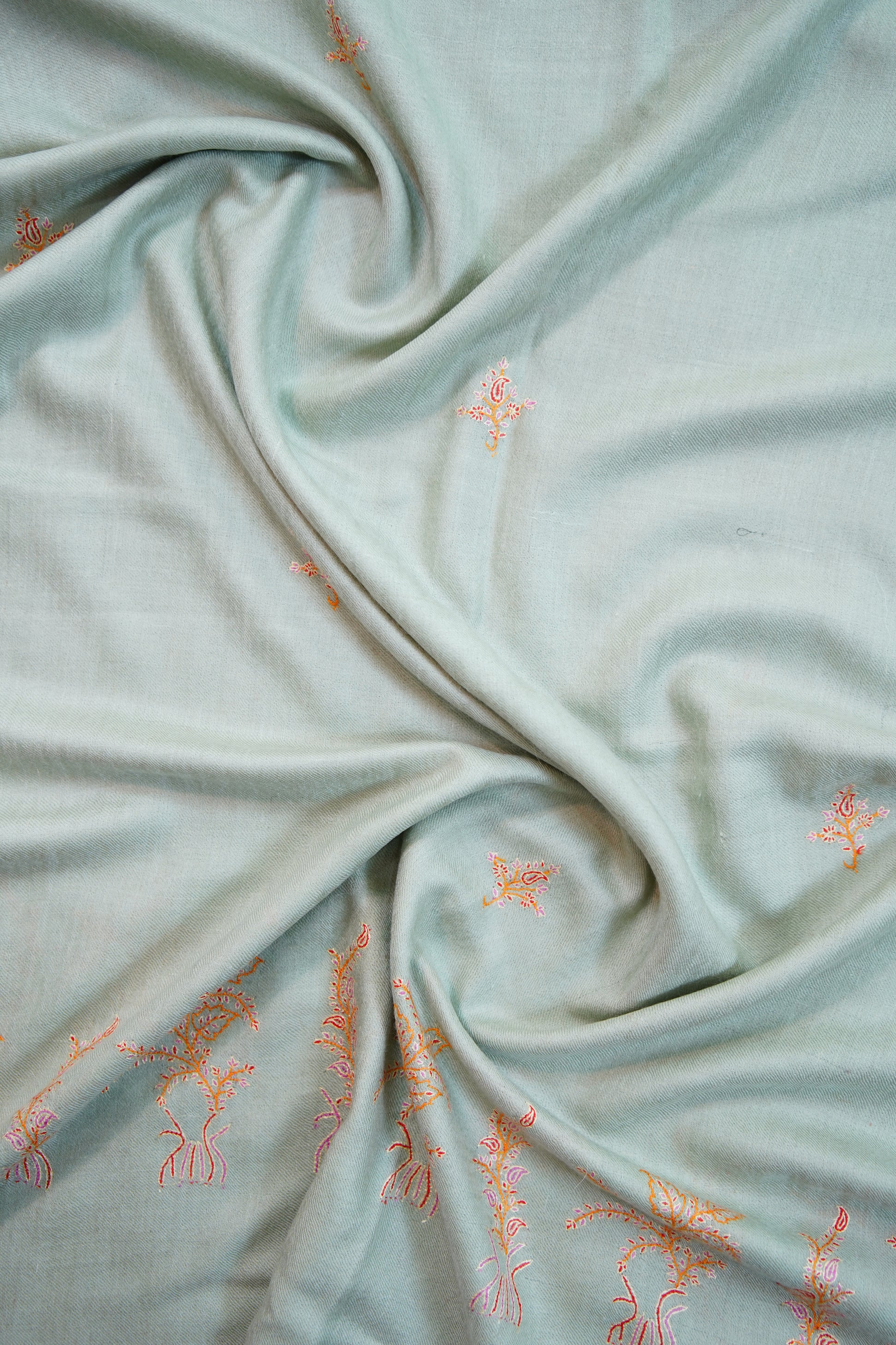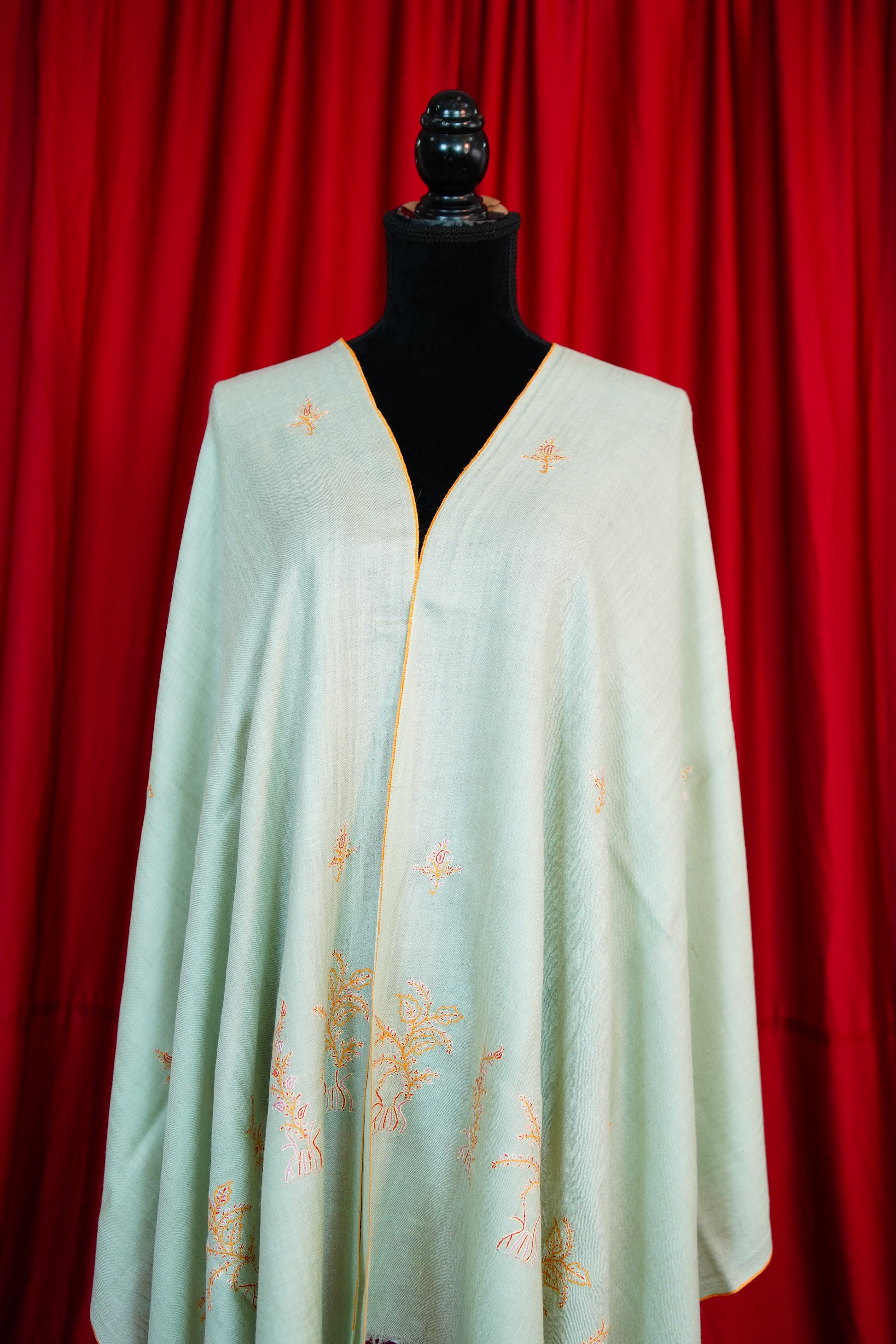 Elegantly hand-embroidered by skilled artisans, each stole features timeless Kashmiri motifs stitched with precision. The embroidery process can take weeks or even months, making every piece a testament to patience and heritage.