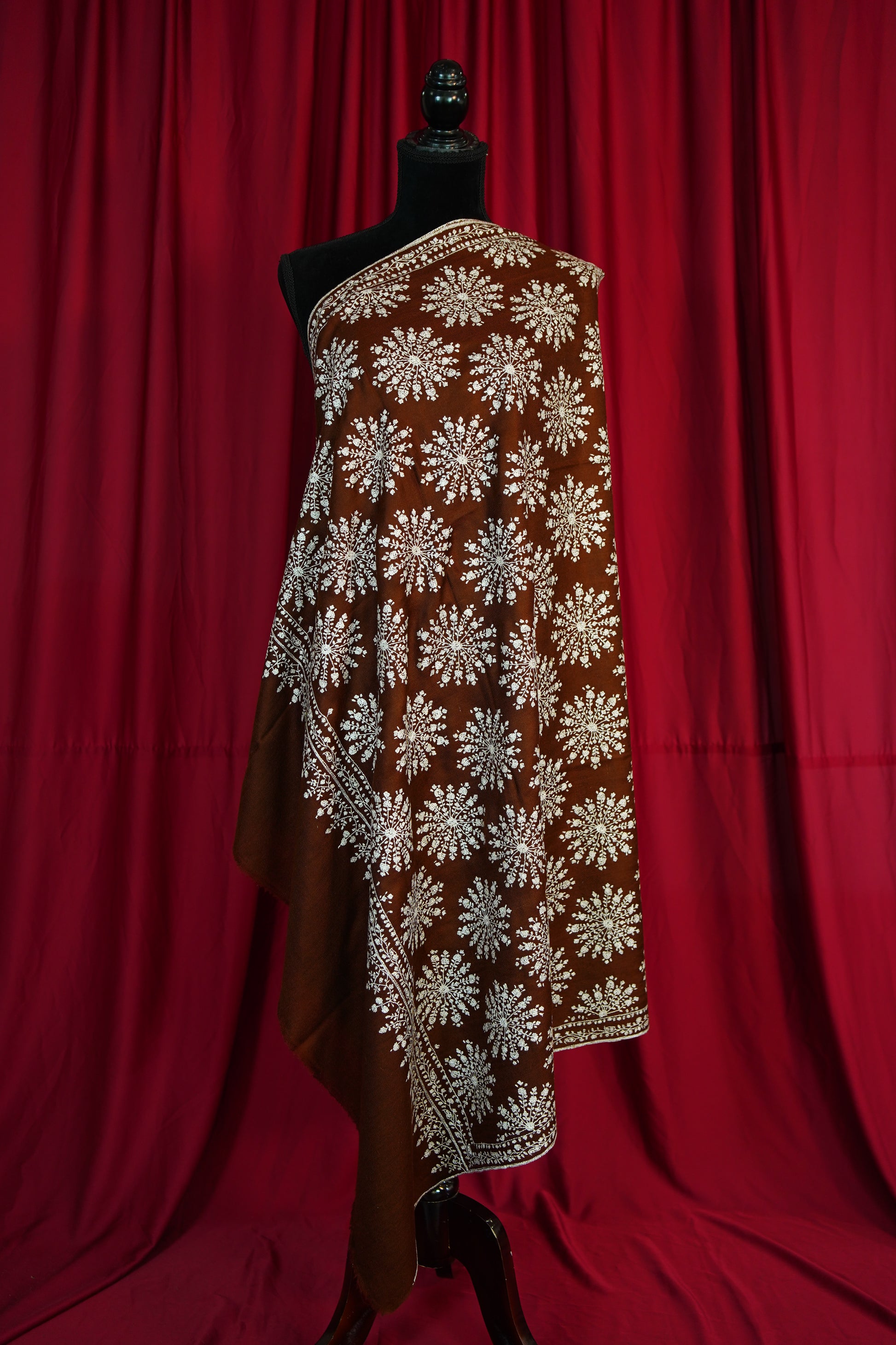 chocolate brown GI butis embroidery pashmina shawl 9656