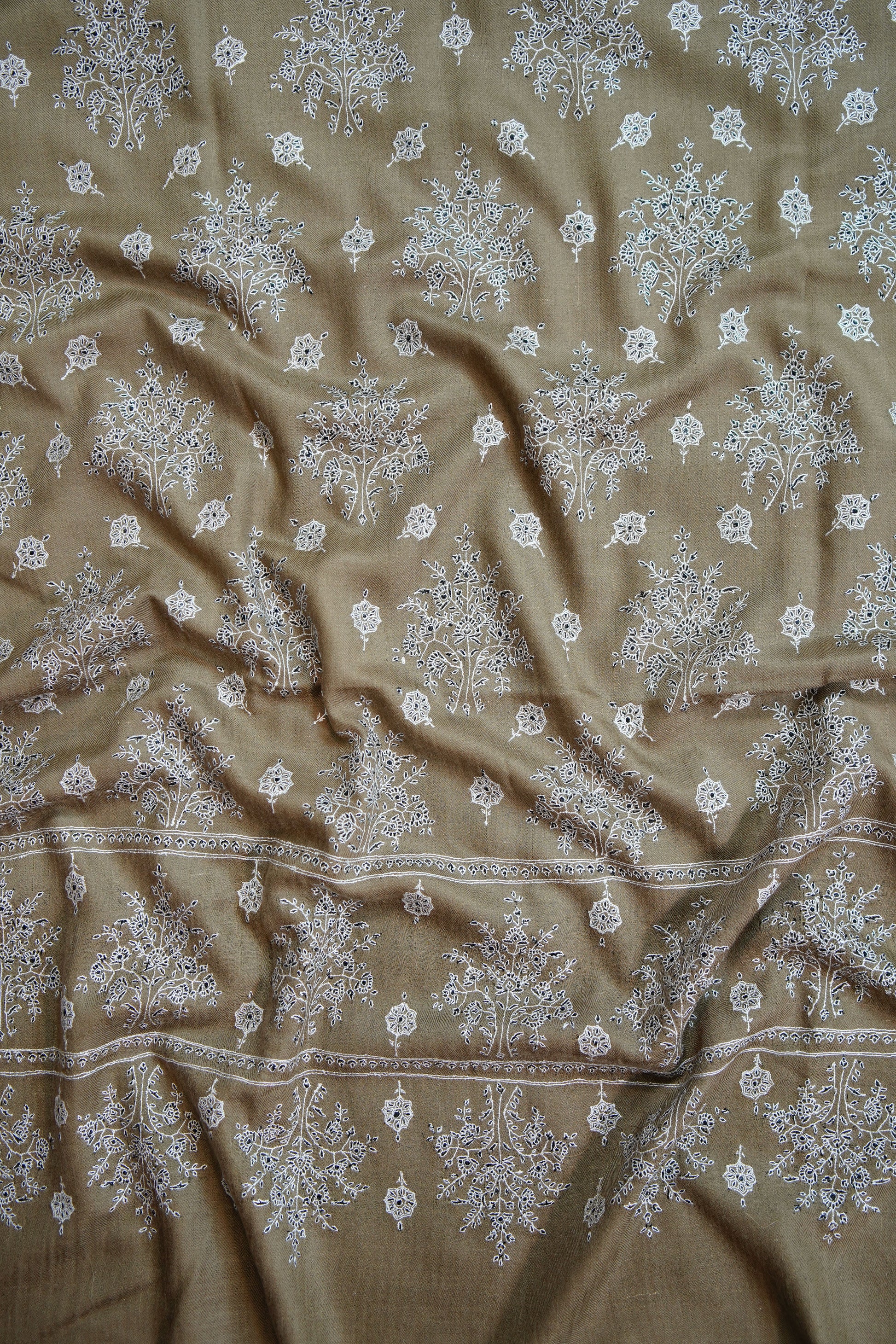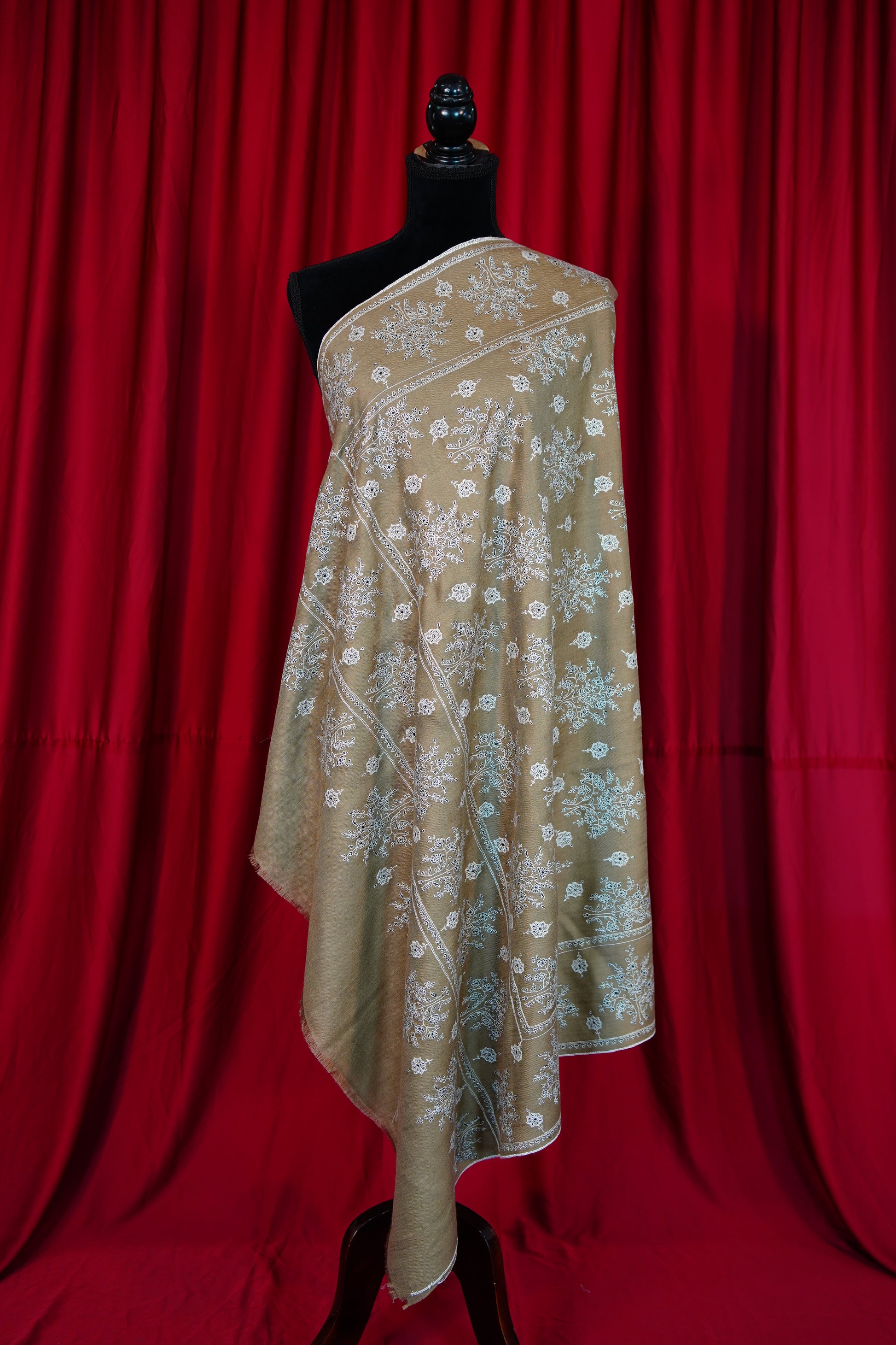 Patiently created by master artisans, every shawl is the result of months of devoted craftsmanship, where fine threads transform into poetry. The intricate motifs echo centuries of Kashmiri heritage—each stitch preserving a legacy, each pattern telling a story of tradition and pride.