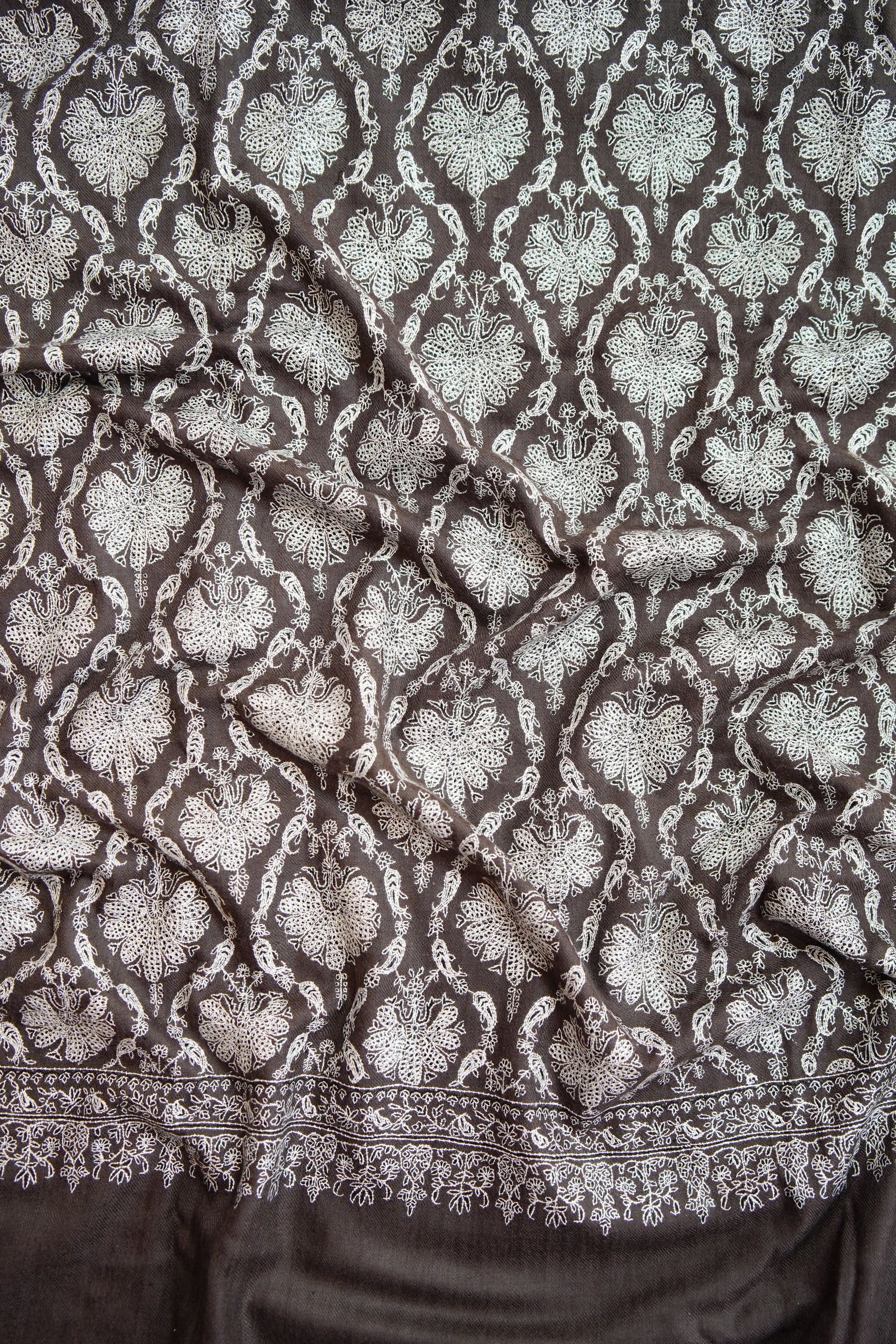 espresso handspun GI embroidery pashmina shawl 9831
