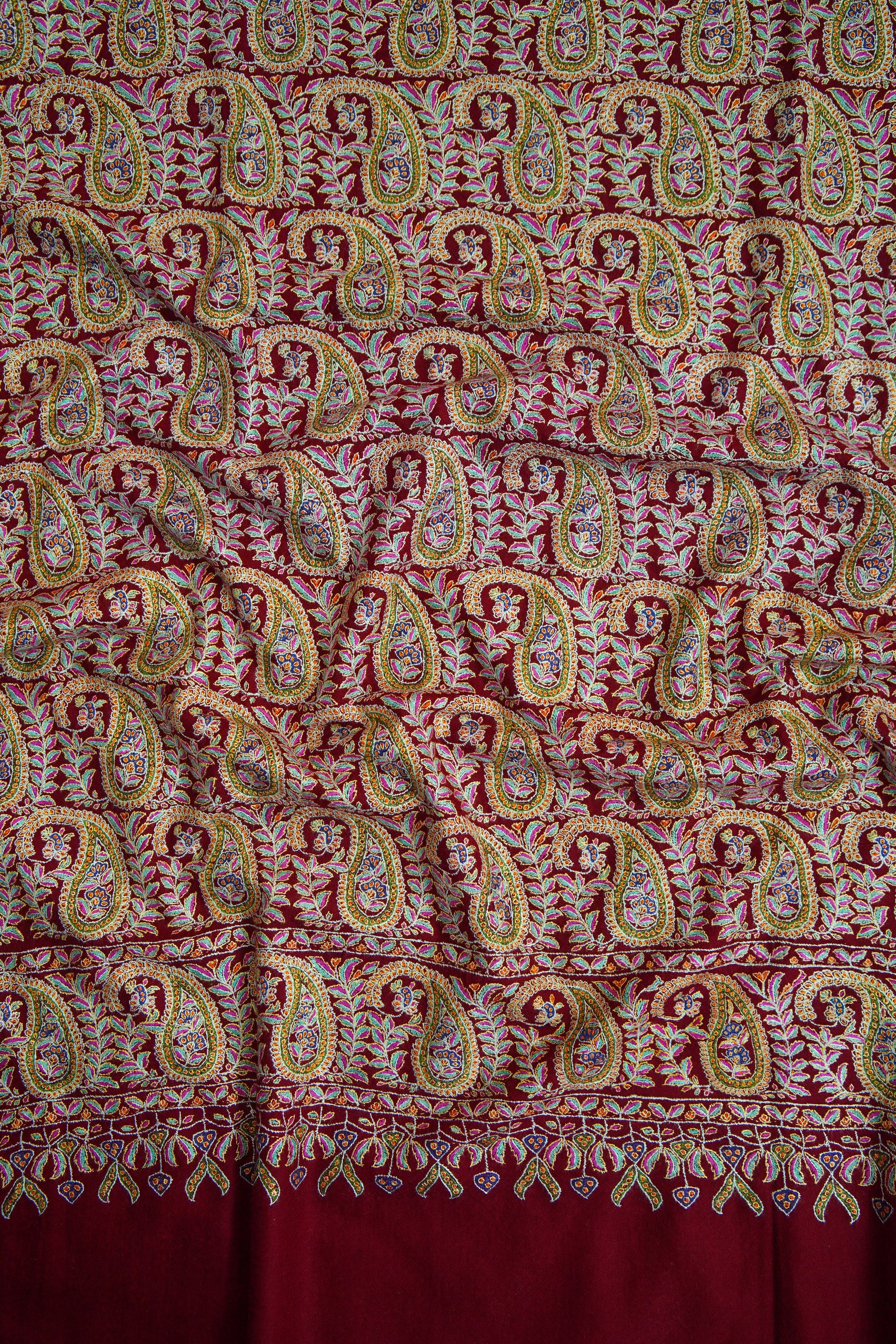 maroon GI jamma embroidery pashmina shawl 9751