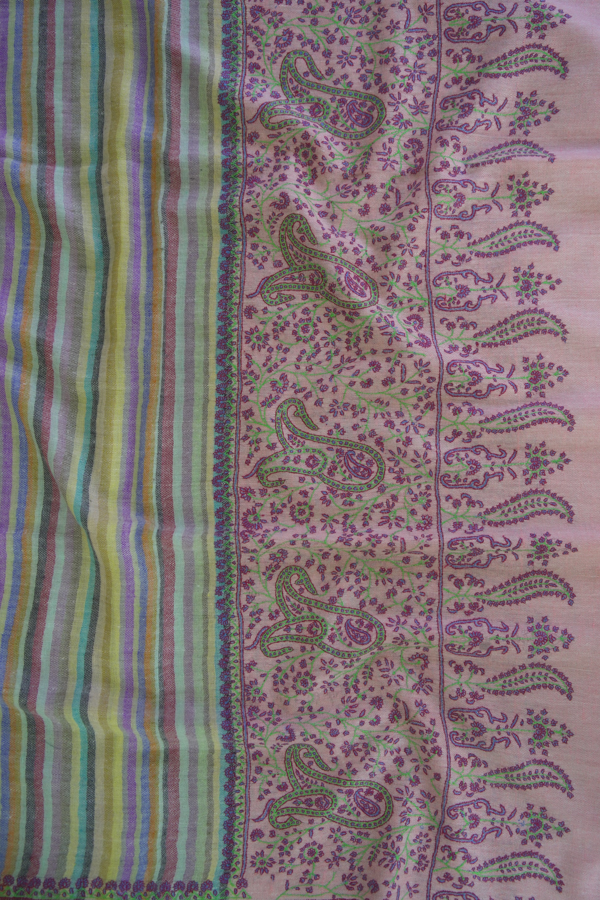 multi-coloured striped GI embroidery pashmina shawl 9474