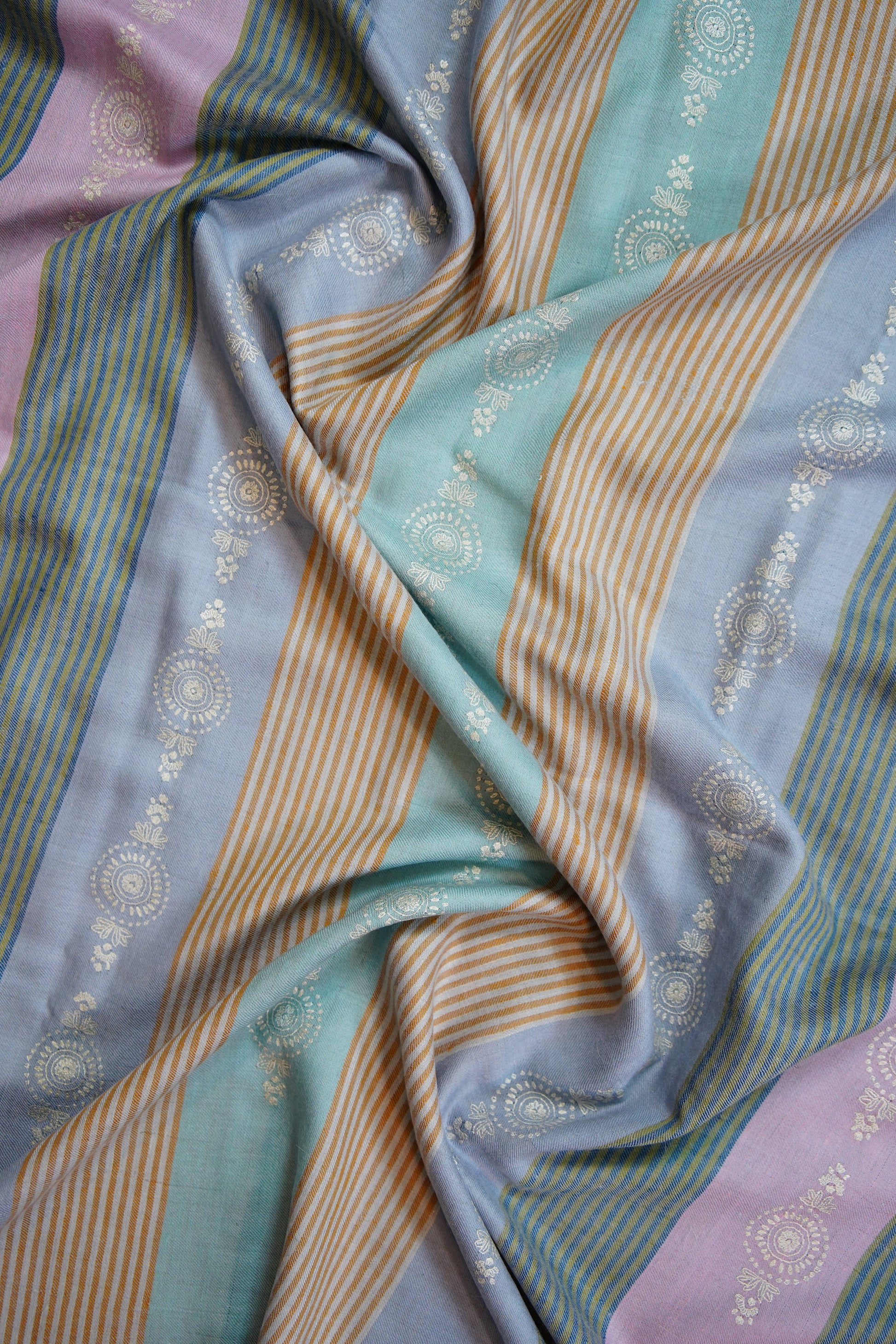 multi-coloured striped GI embroidery pashmina shawl 9798