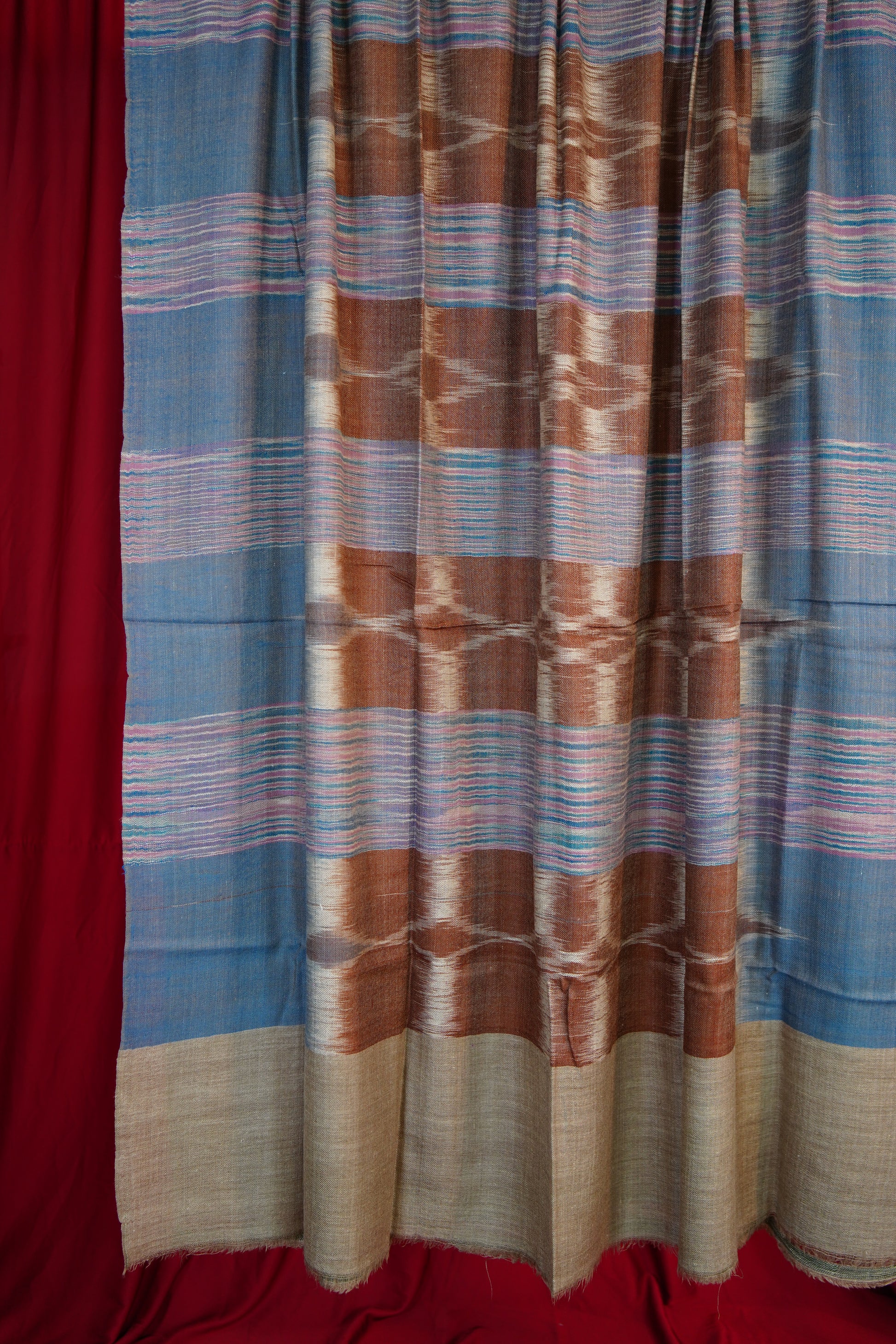 Experience the understated luxury of our XL Ekat Pashmina Shawl — a graceful expression of Kashmiri elegance and refined design. Crafted from pure, ultra-soft Pashmina, this shawl features the distinctive Ekat patterning technique, where each piece displays beautifully balanced colors and fluid, artistic transitions that create a naturally elegant visual flow.