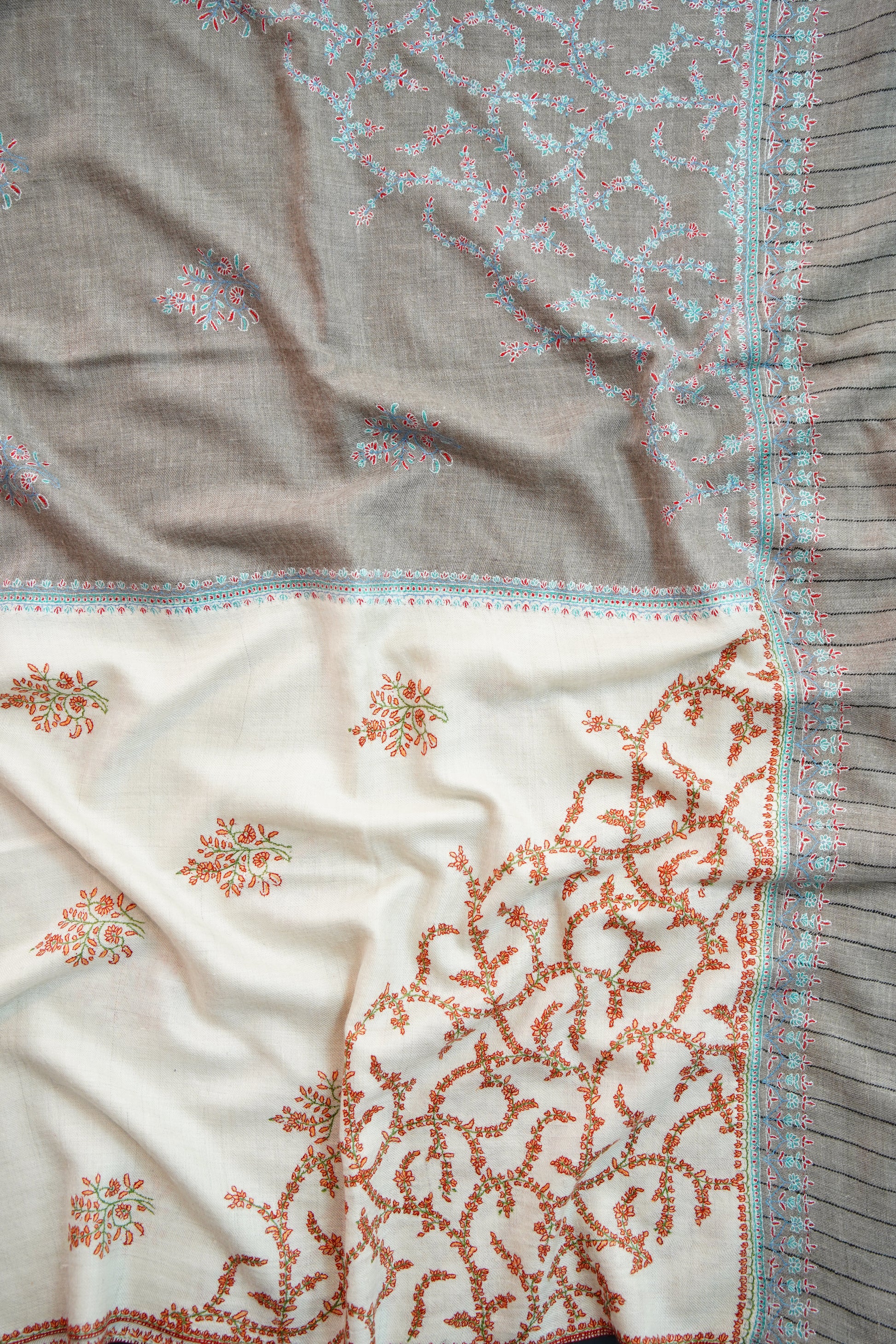 natural and white GI embroidery pashmina shawl 9820