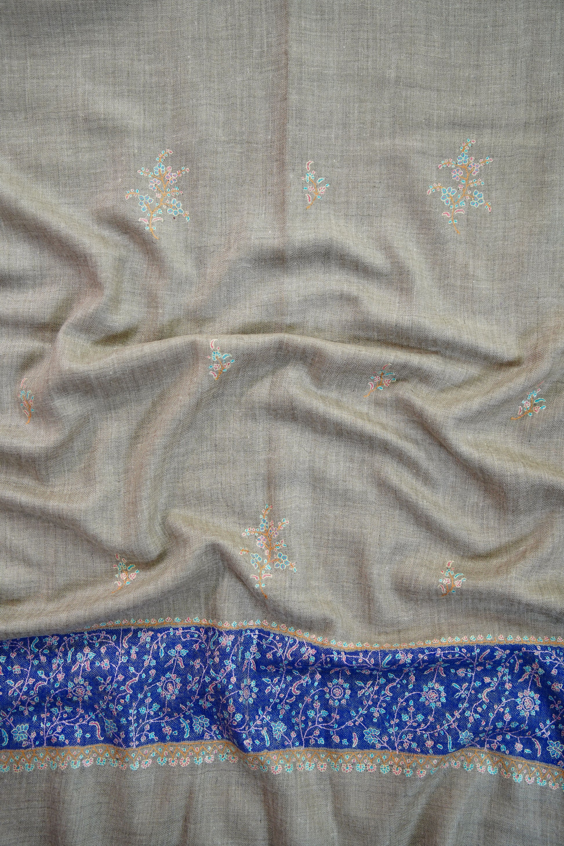Elegantly hand-embroidered by skilled artisans, each stole features timeless Kashmiri motifs stitched with precision. The embroidery process can take weeks or even months, making every piece a testament to patience and heritage.