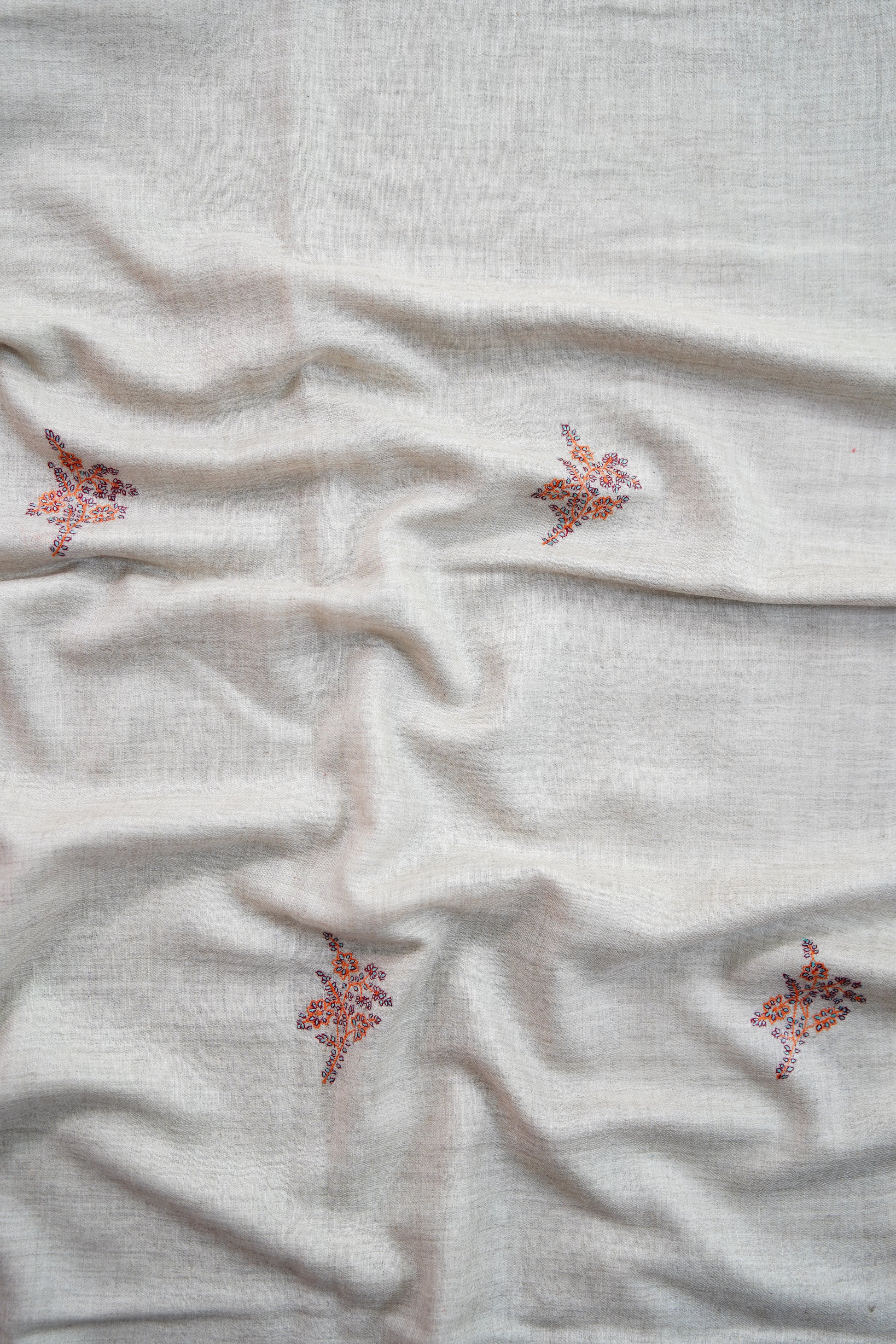 Elegantly hand-embroidered by skilled artisans, each stole features timeless Kashmiri motifs stitched with precision. The embroidery process can take weeks or even months, making every piece a testament to patience and heritage.