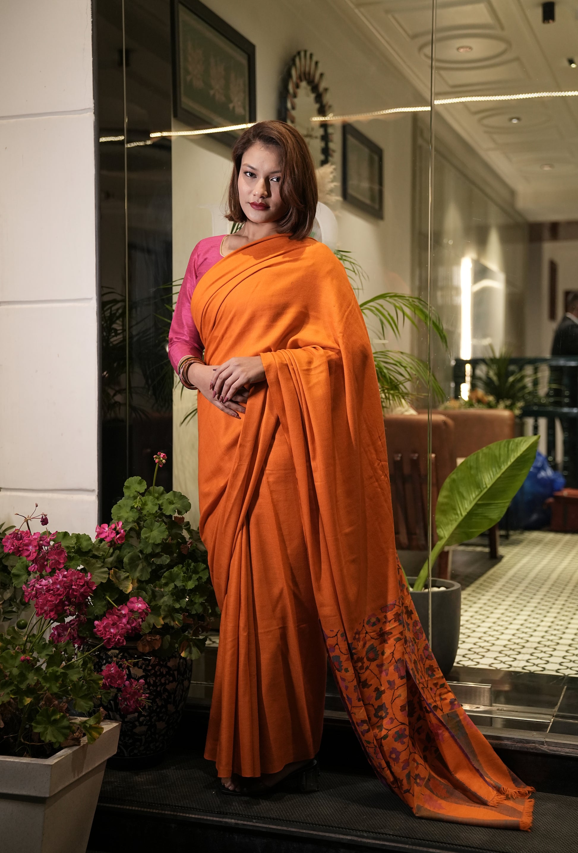 orange handmade kani palla woven saree
