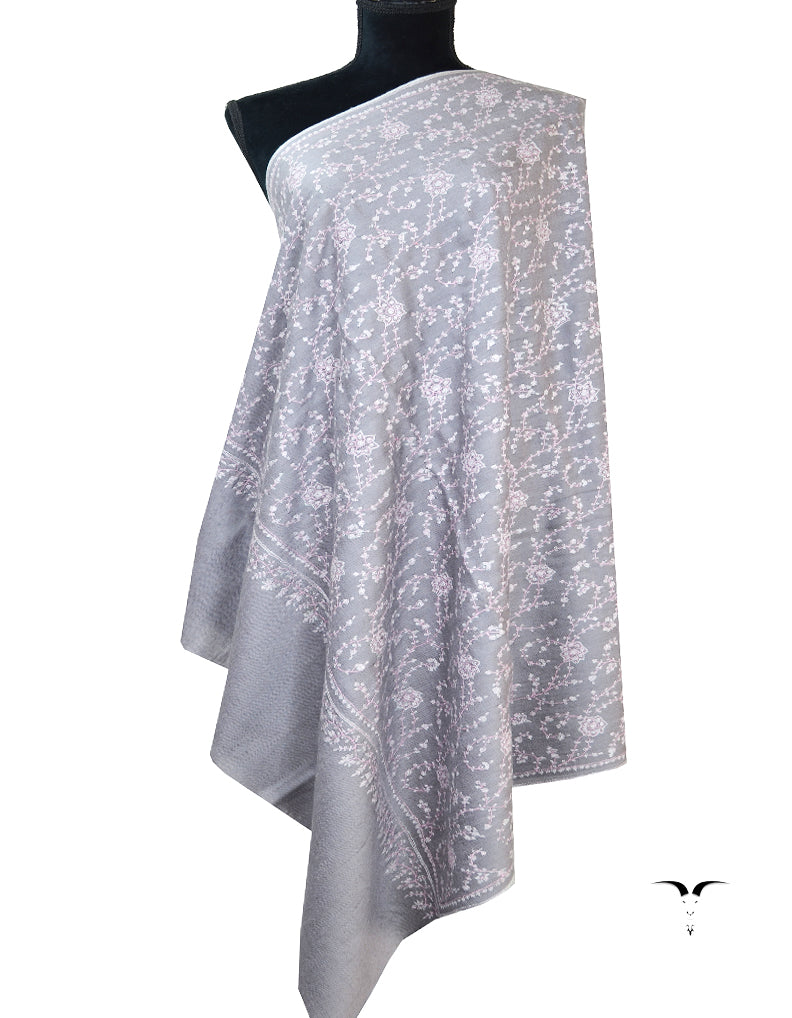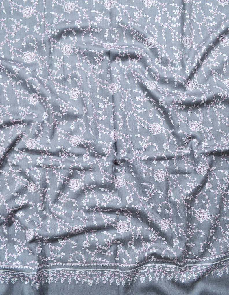 pewter grey jaali embroidery pashmina shawl 8325
