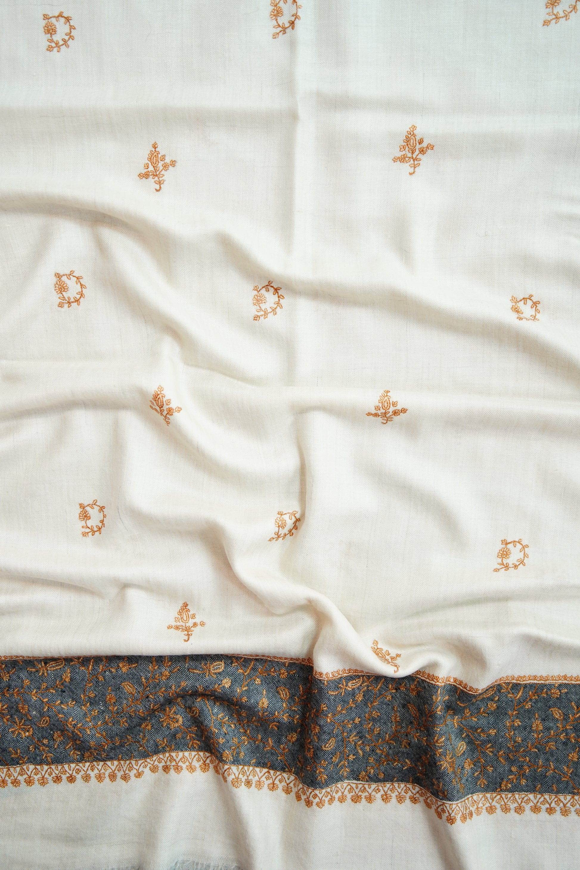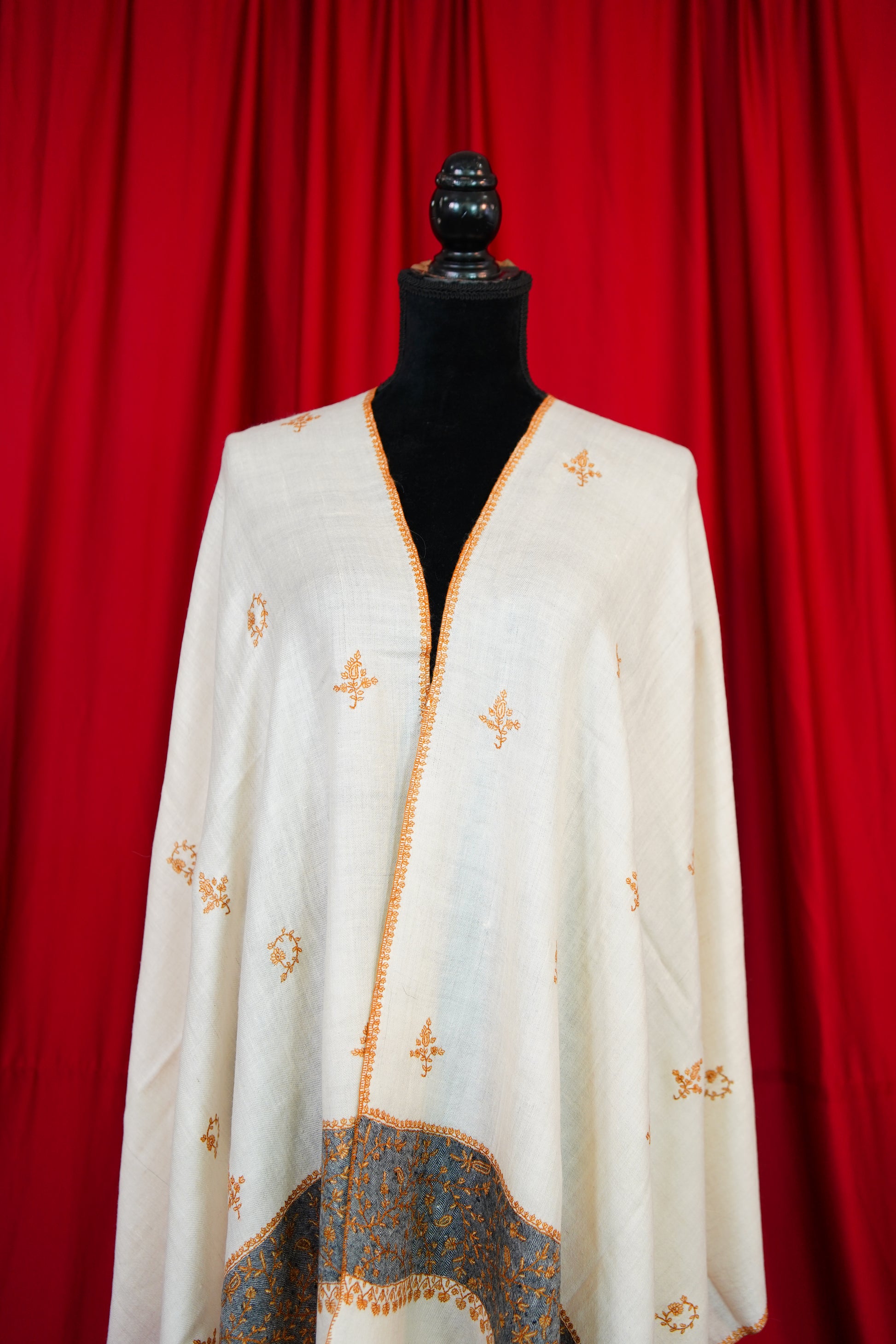 Elegantly hand-embroidered by skilled artisans, each stole features timeless Kashmiri motifs stitched with precision. The embroidery process can take weeks or even months, making every piece a testament to patience and heritage.