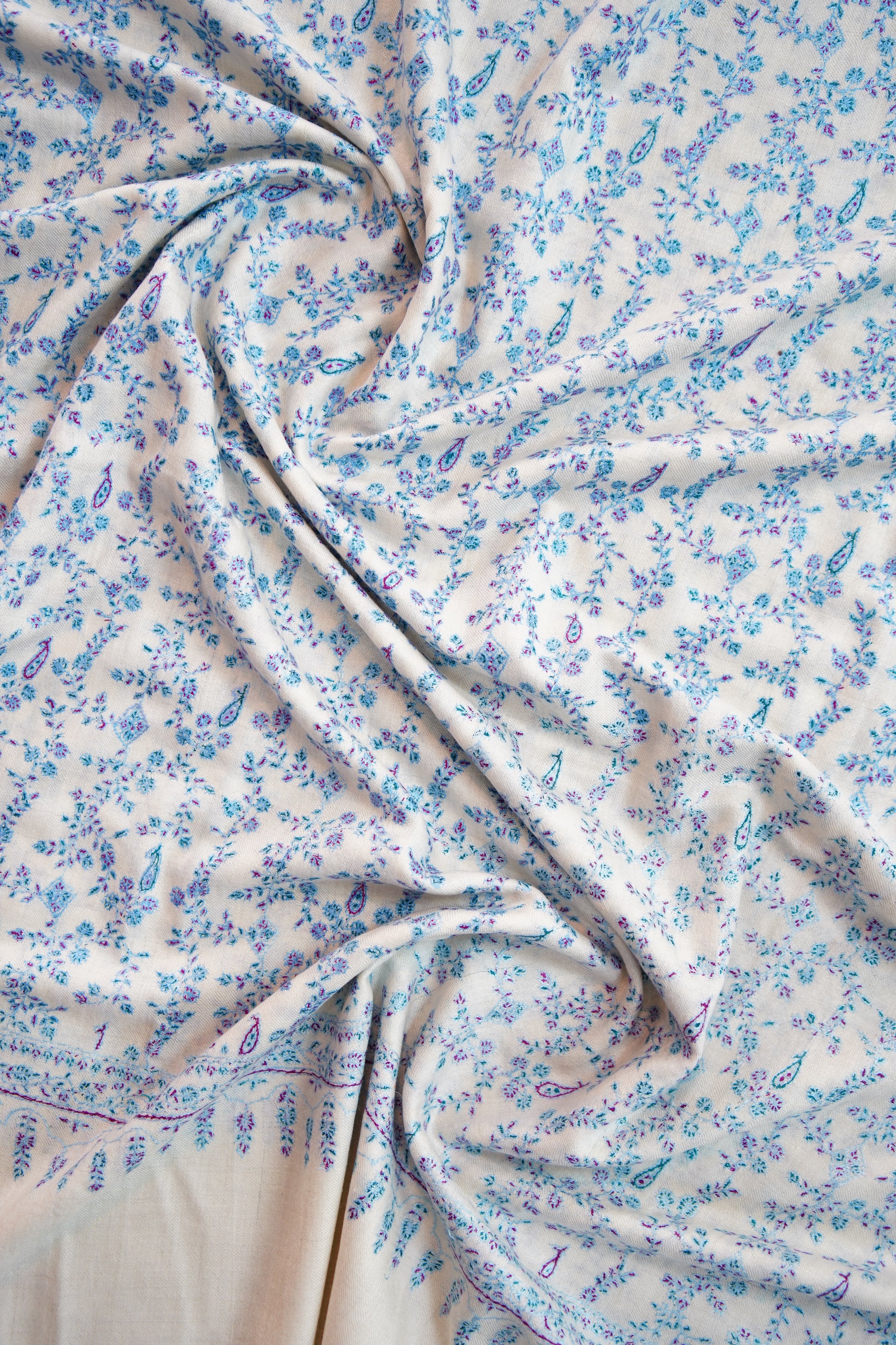Patiently created by master artisans, every shawl is the result of months of devoted craftsmanship, where fine threads transform into poetry. The intricate motifs echo centuries of Kashmiri heritage—each stitch preserving a legacy, each pattern telling a story of tradition and pride.