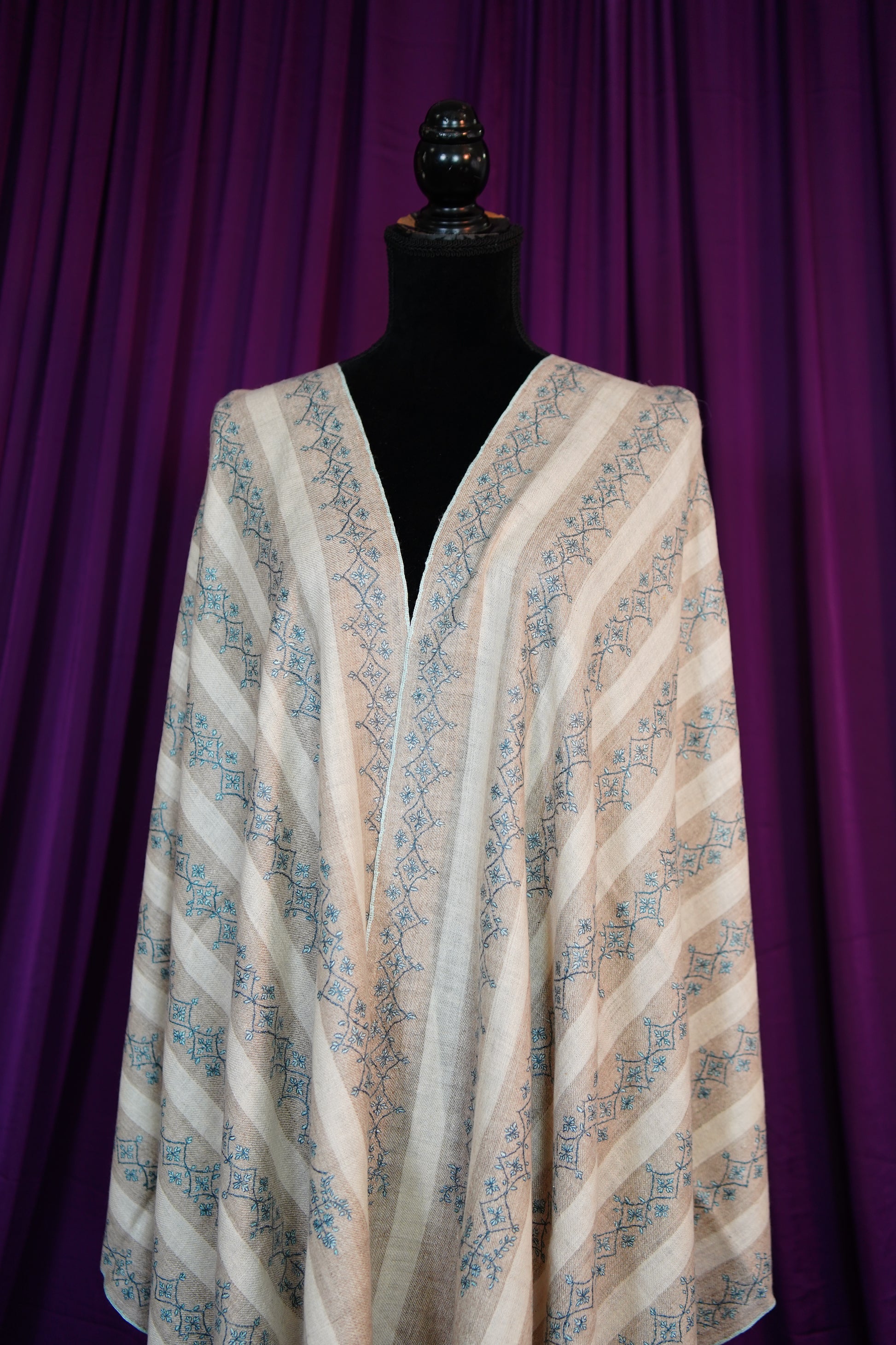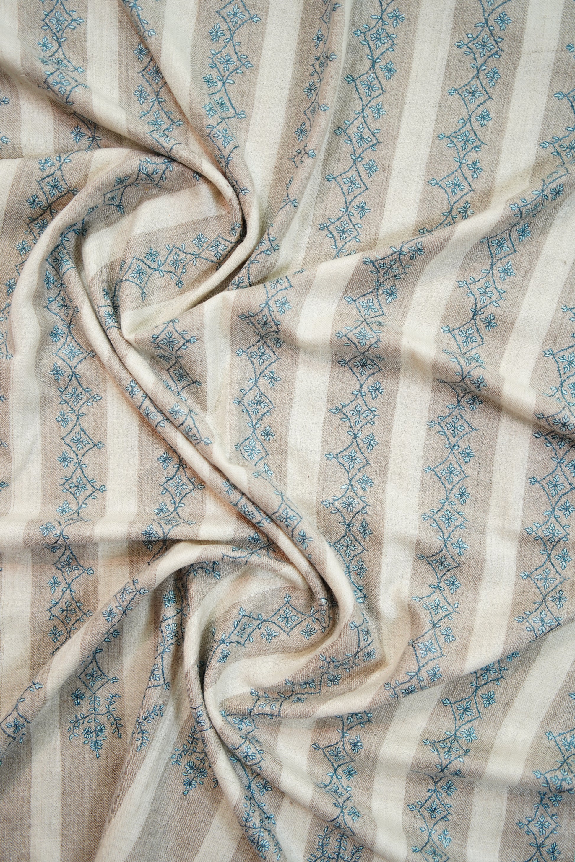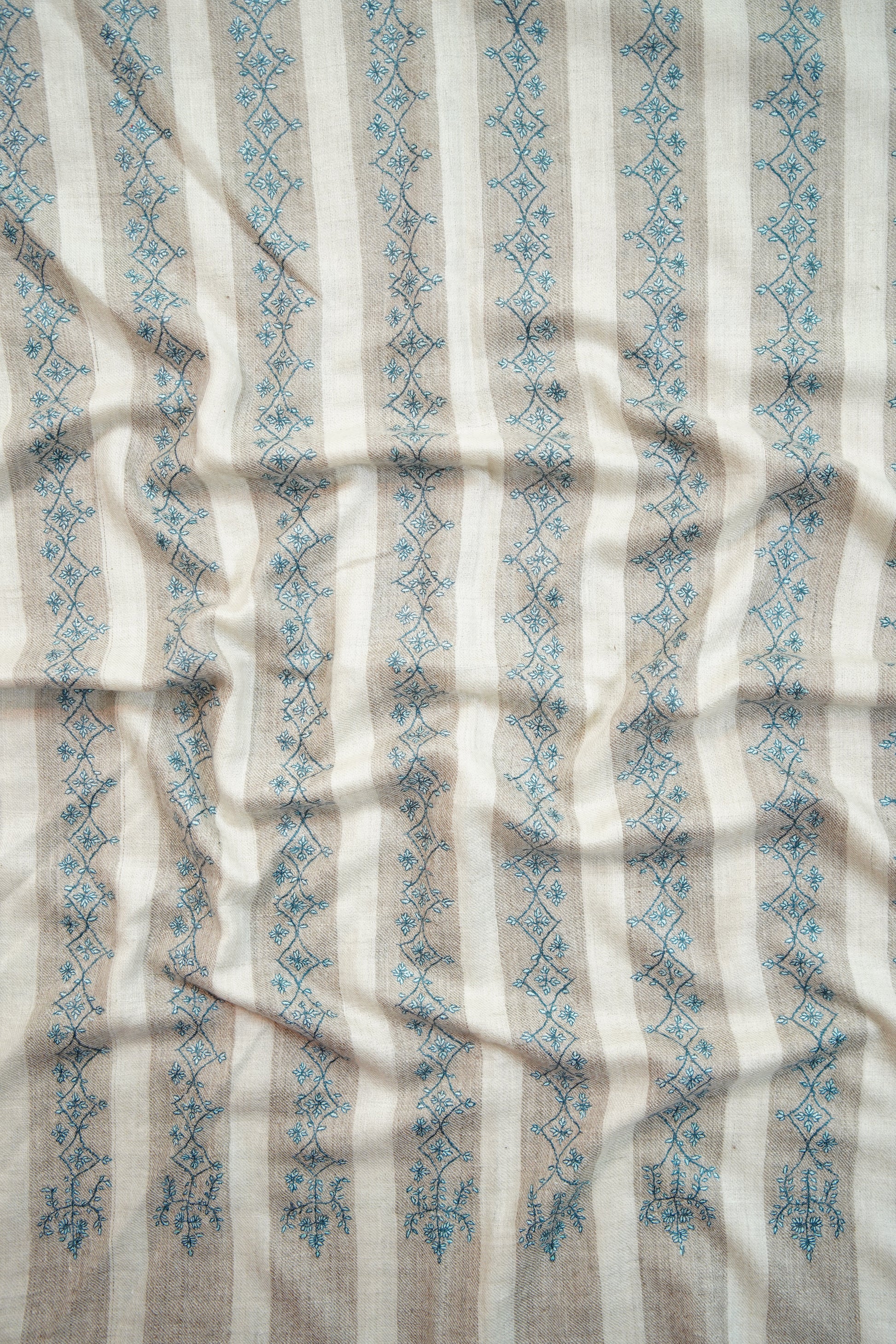 white and natural striped GI handspun embroidery pashmina stole 9817